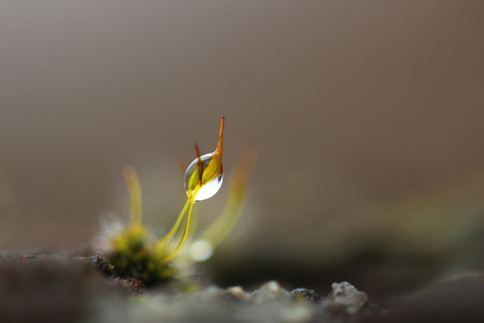 Ga eens op de knietjes voor mosjes die overal op en tussen groeien en een paar gewone grassprieten met regen- of dauwdruppels kunnen al garant staan voor prachtige foto’s! Zelfs van stenen kun je kunstzinnige abstracte beelden maken.