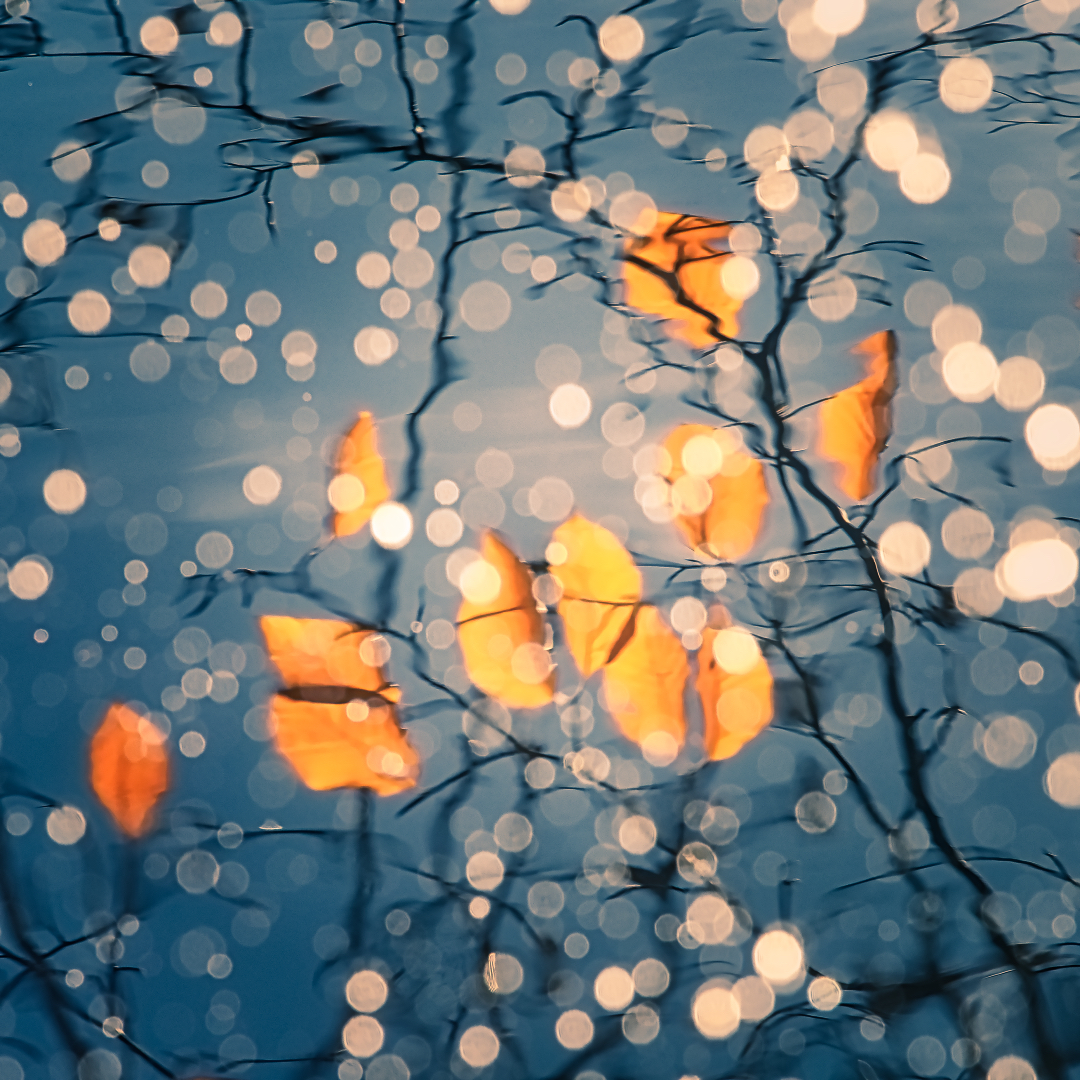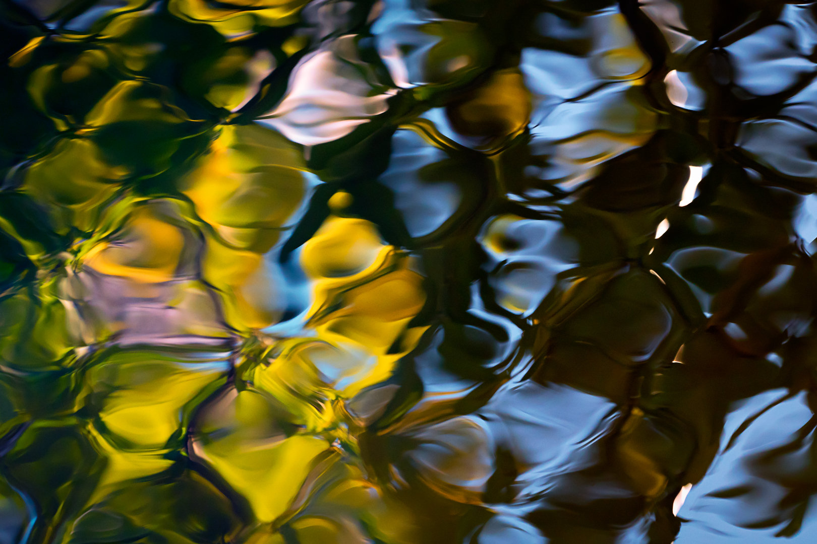 Extra objecten die drijven op het oppervlakte die de weerspiegeling veroorzaken kunnen het beeld nog abstracter maken.