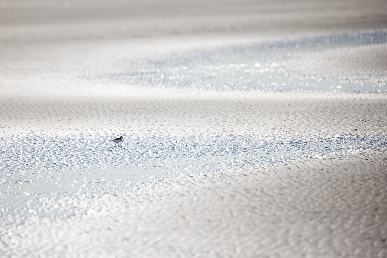 Met een rugzak op en statief in de hand loop ik door het mulle zand en voel mijn voeten af en toe wegzakken. Langzamerhand wordt het zand harder en knispert het onder mijn laarzen. Dan sta ik plots in het water, voel de wind door mijn haren en hoor het ruizen van de branding. Ik sta aan Zee. Rust, ruimte en genieten.