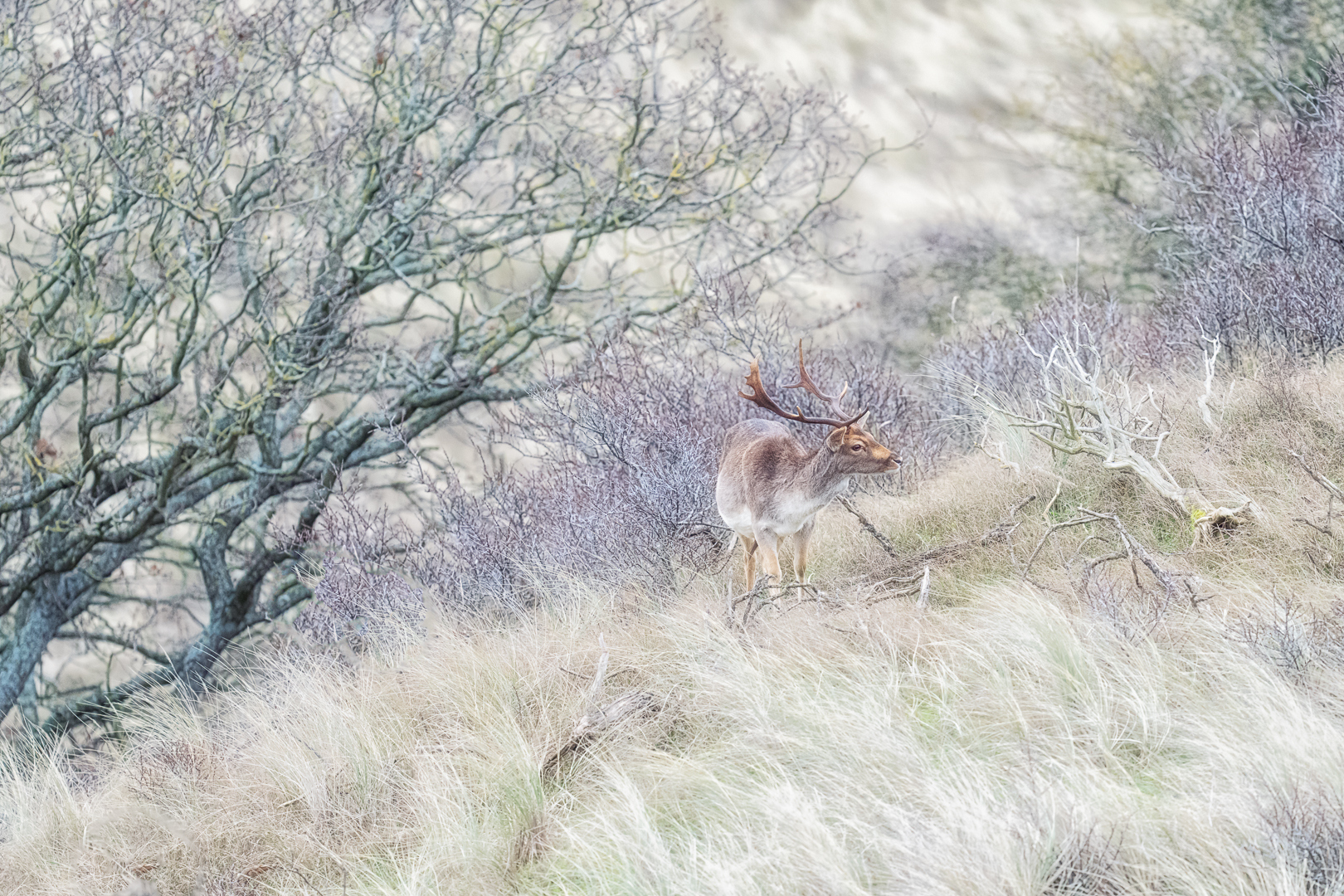 Dan komt de vraag, wat kan ik nu nog meer en hoe kan ik me verder verdiepen in de natuurfotografie. Dit is het vierde stadium waarbij je vaak weer gaat uitzoomen. Dat hert wil je nu het liefst laten zien met mooi licht, een fijne sfeer en in zijn natuurlijke habitat.