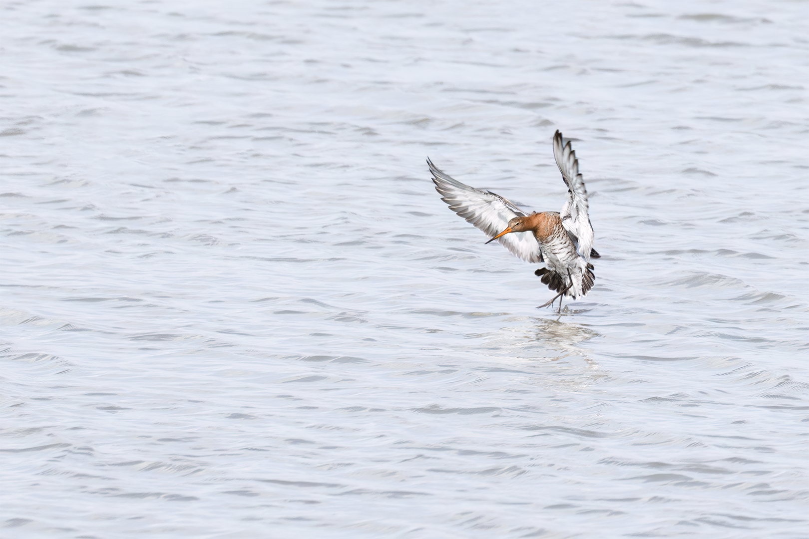 Grutto zet de landing in, altijd machtig om te zien met die gespreide vleugels.