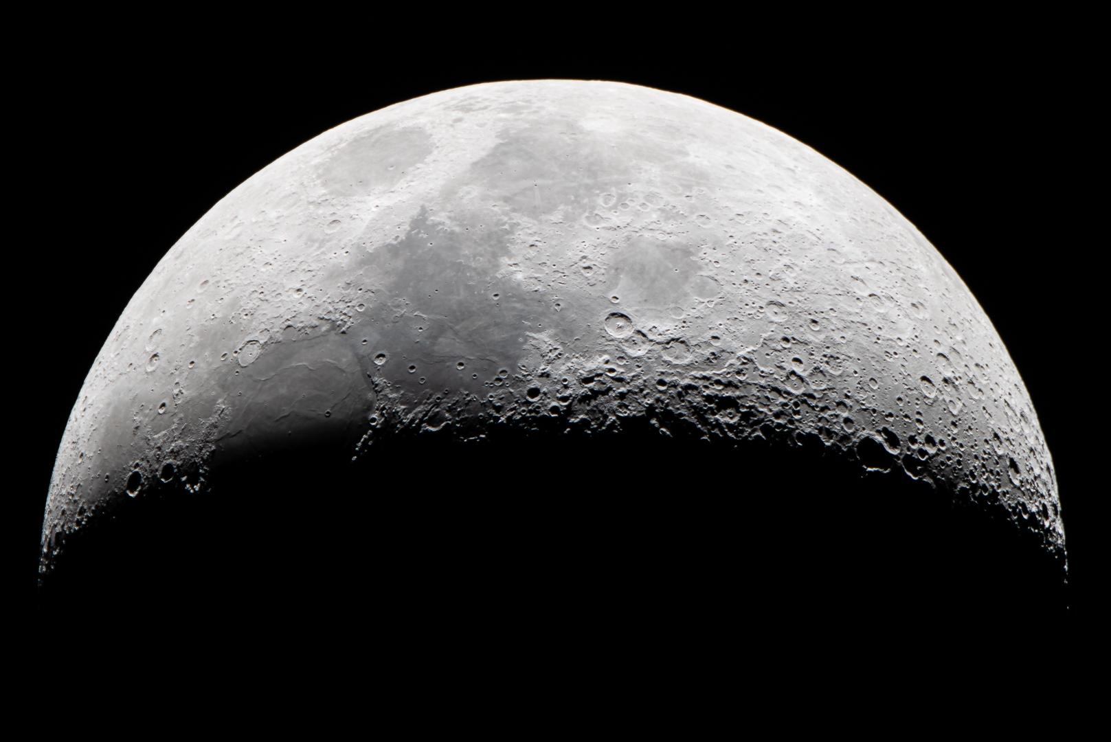De kraters en bergen zijn door de scherpte erg goed zichtbaar, dus lekker veel detail. Mooie compositie ook.