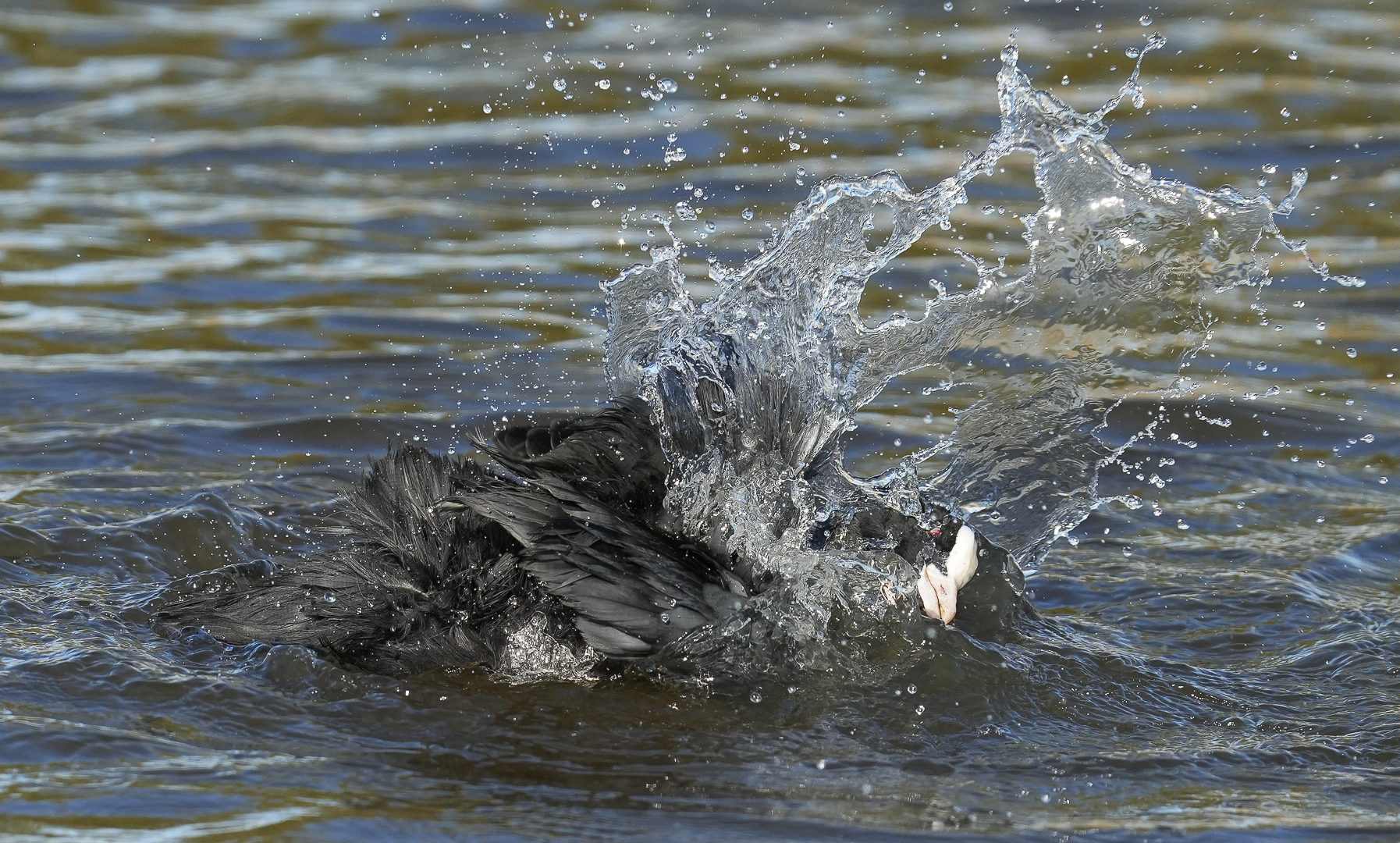 Deze meerkoet was druk bezig om een bad te nemen. Het was zo te zien een enorm gespetter.