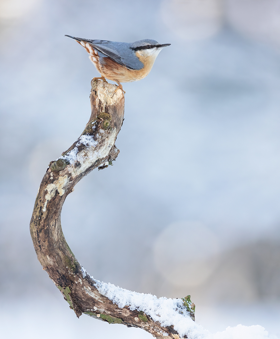 Die tak in combinatie met de sneeuw levert je een aantal mooie beelden op Luc. Wederom een hele fraaie compositie en ook de achtergrond met de zachte bokeh bollen is van grote meerwaarde in je beeld.