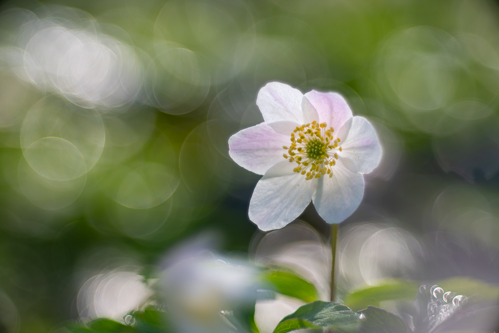 Het is inderdaad weer de tijd voor de bosanemoontjes! Mooi scherp met opvallende bokeh-bollen in de achtergrond.