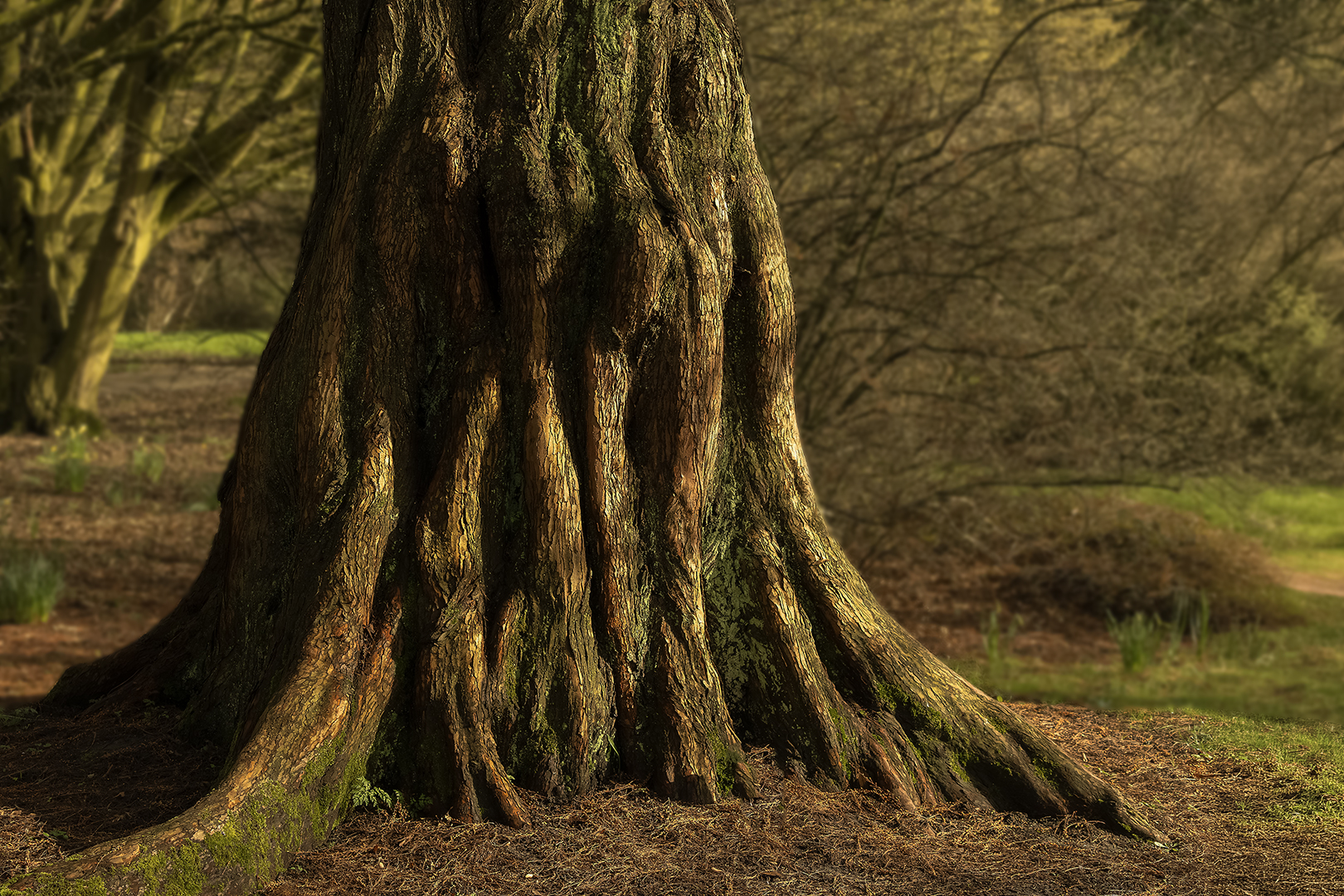 Deze oude knar had mijn aandacht meteen te pakken met zijn robuuste stam waar langs mooie plooien door de jaren heen ontstaan waren. Ik heb de achtergrond met plaatselijke vervaging in PS wat zachter gemaakt zodat alle aandacht naar de mooie stam gaat.