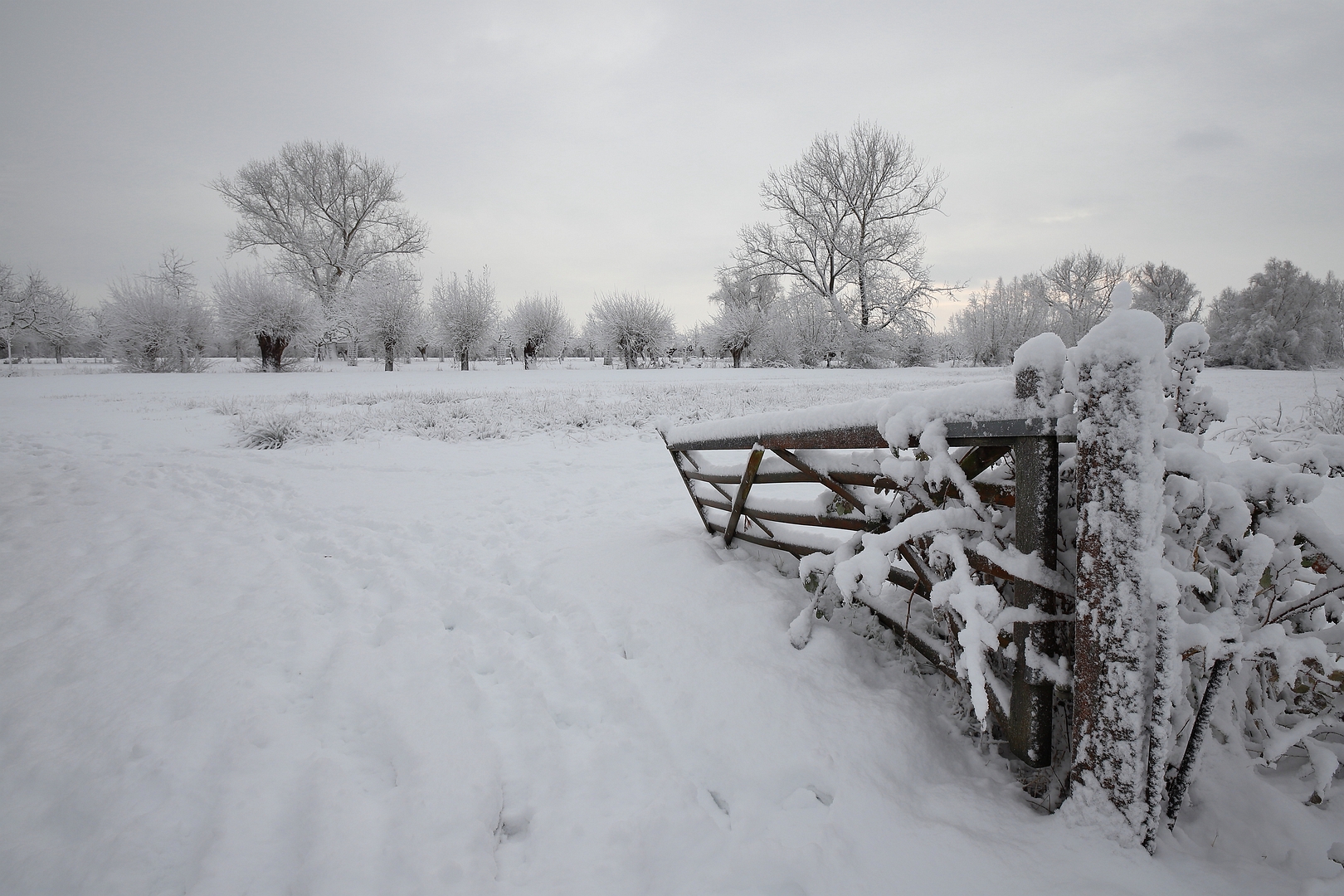 Zo,n open hek is wel een uitnodiging om het fraaie winterse landschap te betreden ,en natuurlijk te fotograferen, en gezien de voetsporen in de sneeuw dachten er meer zo over want dit maak je niet zo heel vaak mee.