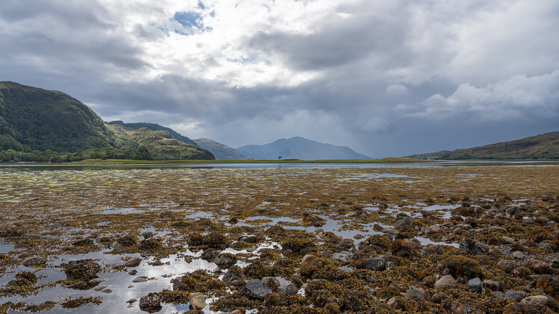 Bijzonder hoe dat hele kleine boompje opvalt door de plek waar het staat. De typisch schotse wolkenlucht maakt het beeld af.