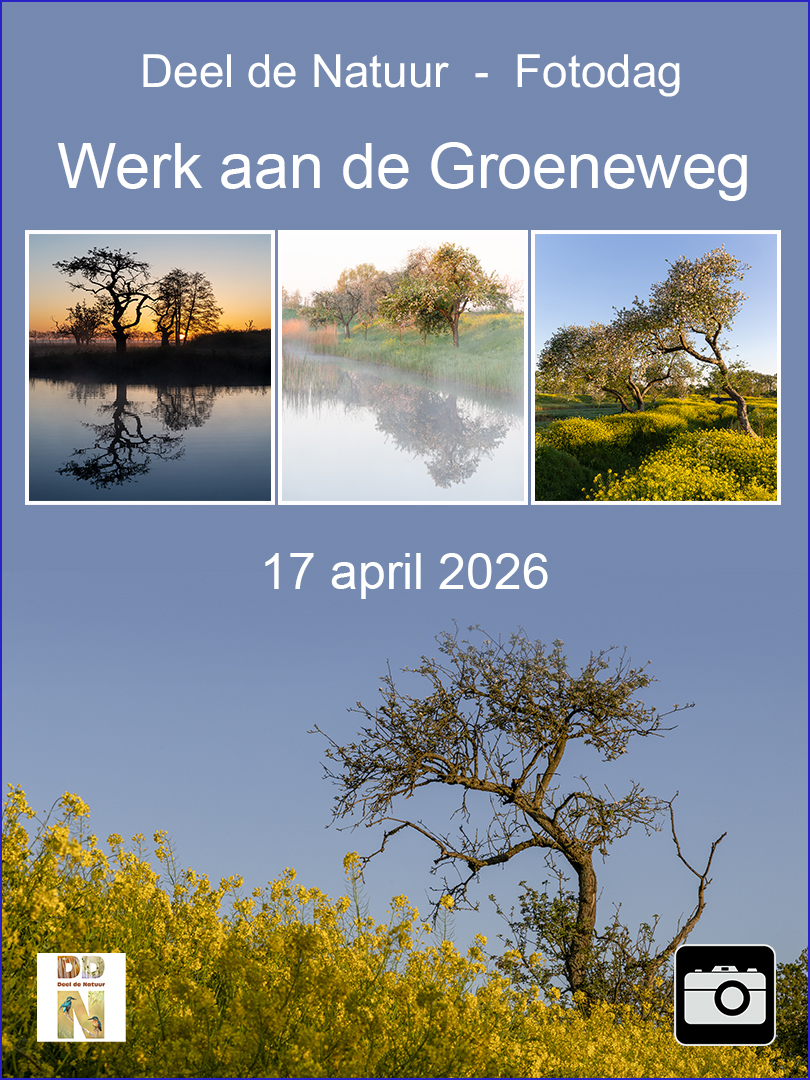 "Werk aan de Groeneweg" is een unieke locatie waar de natuurfotograaf zich volop kan uitleven in het boeiende landschap met fruitbomen en in het voorjaar zijn de wallen begroeid met koolzaad wat het gebied nog aantrekkelijker maakt voor kleurrijke foto’s.
