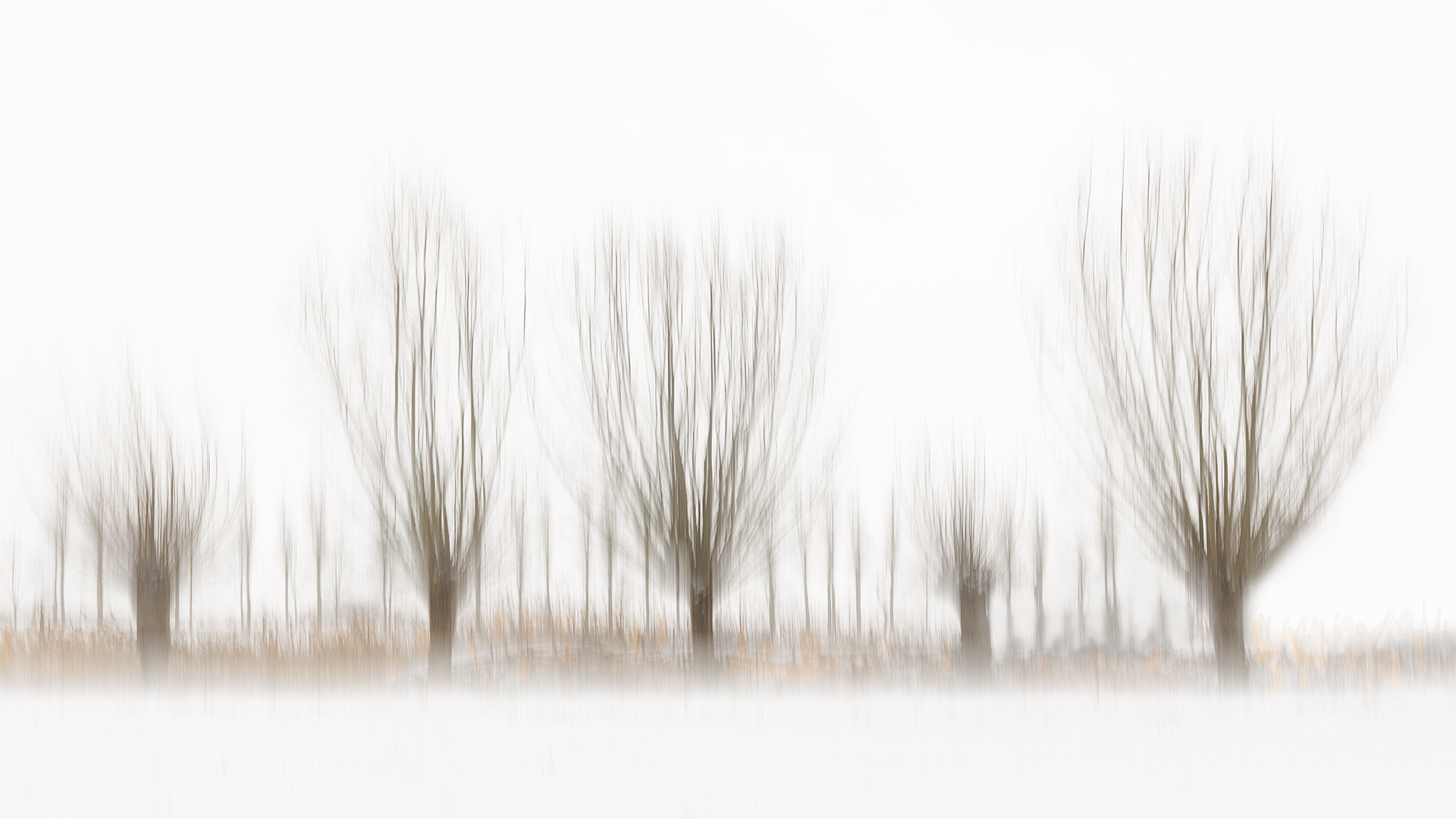 Eindelijk hier in het Westen ook wat sneeuw, maar dan ligt er in het hele land zoveel, dat autorijden toch niet verstandig is. Tja, wat dan te doen als je geen bos in de buurt hebt. De polder maar in, want ook daar zijn er kansen. Hier heb ik de ICM techniek gebruikt.