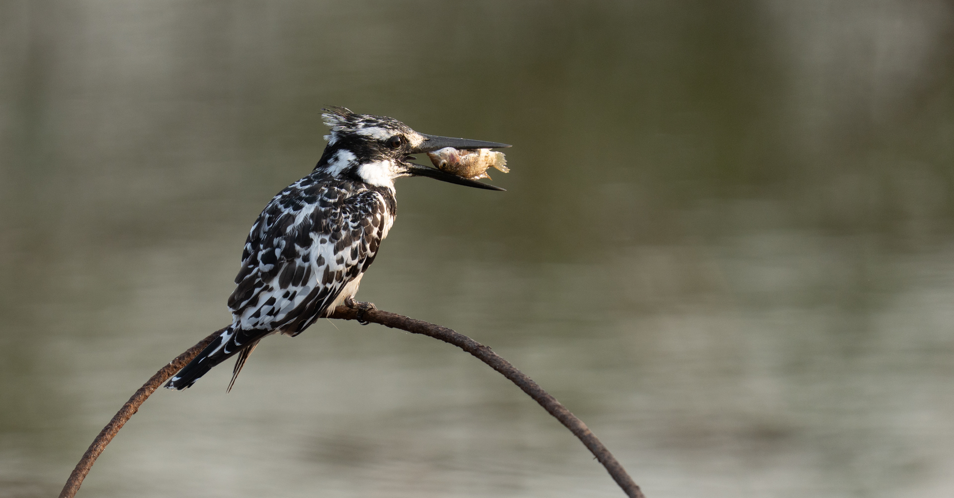 In Gambia komen wel acht soorten ijsvogels voor. De bonte ijsvogel is wel de meest algemene maar niettemin ook mooi om te zien zeker met een visje.