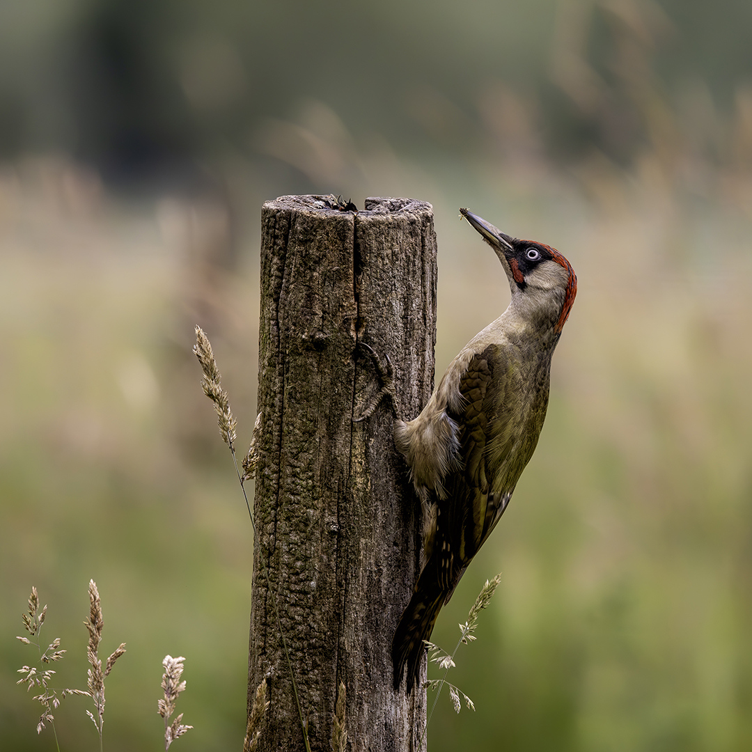 Een groene specht liet zich ook even bewonderen en klom een paal in om er later op de uitkijk te gaan.