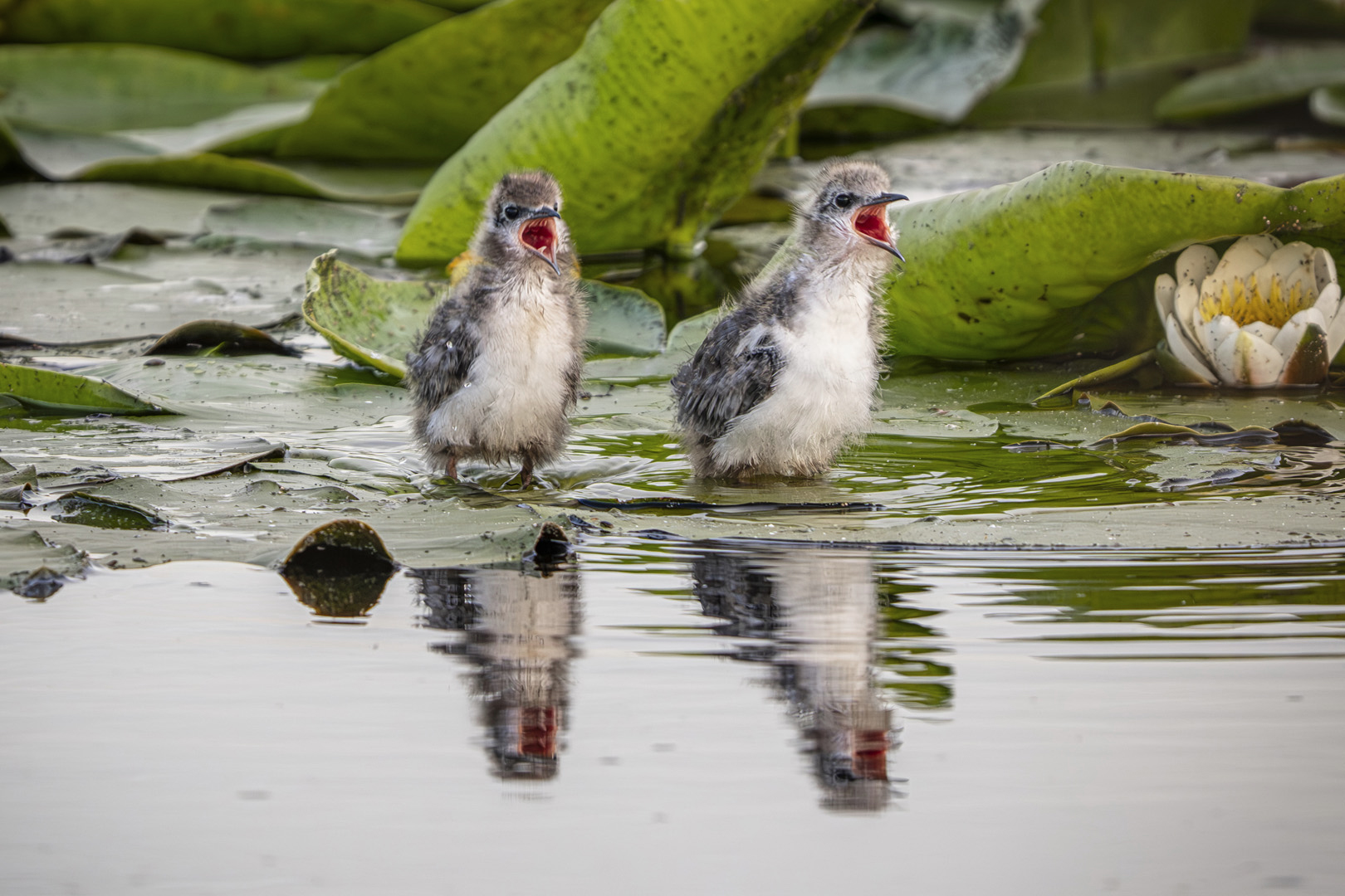 Elke keer als er eten aankomt gaan de snavels wijd open....