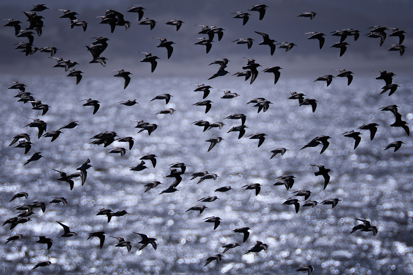 Dat was een prachtig schouwspel. Hier vlogen ze even boven het water met tegenlicht.