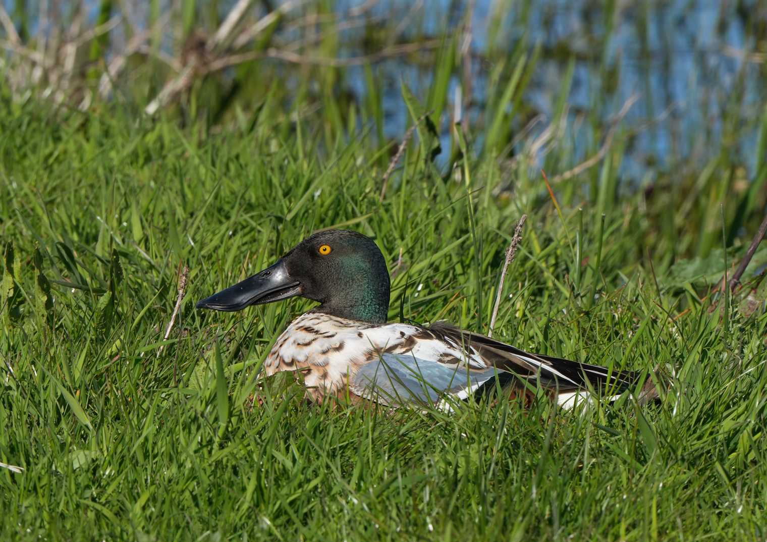 Normaal lopen de Slobeenden snel het water in en zwemmen of vliegen weg.