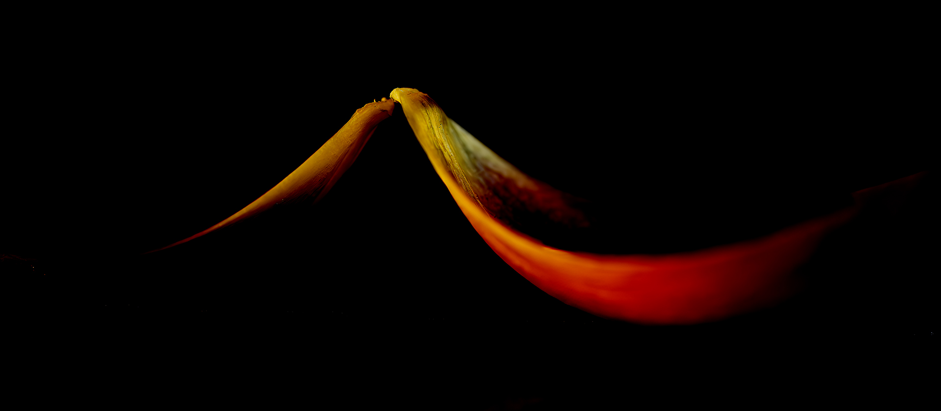 Een minimale scherpte en een bewerking in PS levert dit beeld van twee gevallen tulpenblaadjes.