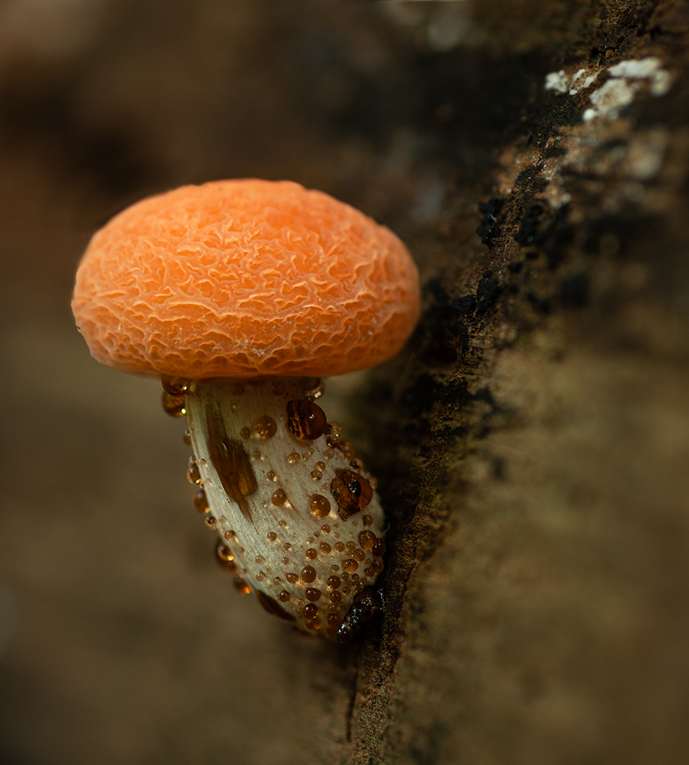 Op de stam in het bos groeien verschillende zalmzwammen. Jammer dat ze zo weinig voorkomen. Ze groeien alleen op iepenstammen en na de iepenziekte van een paar jaar geleden zijn zalmzwammen zeldzaam geworden. Hopelijk blijft de stam liggen en zien we ze volgend jaar weer.