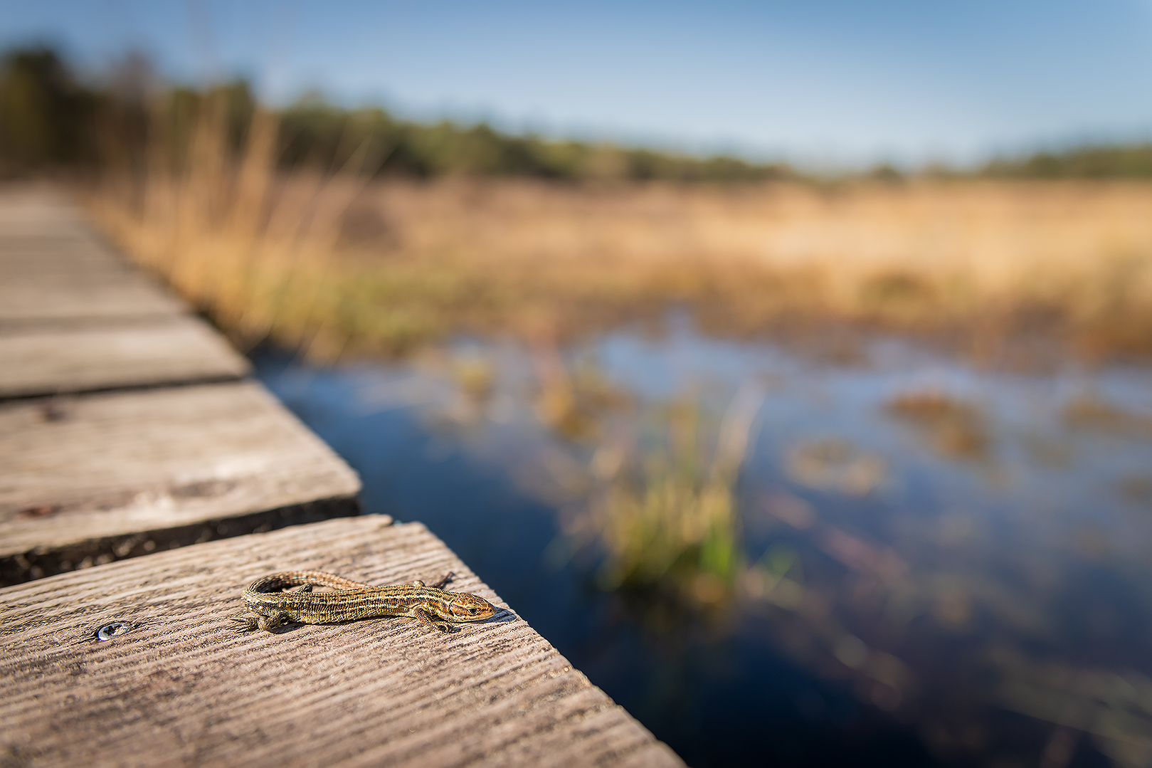 Dit is precies zoals ik de hagedisjes in Drenthe altijd zie, zonnend op een vlonder