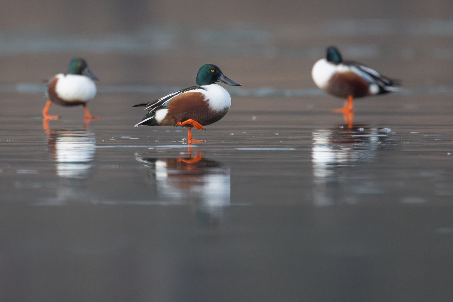 De andere twee zijn prachtig, voorzichtig schuifelend over het ijs en de mooie kleuren maken het compleet.