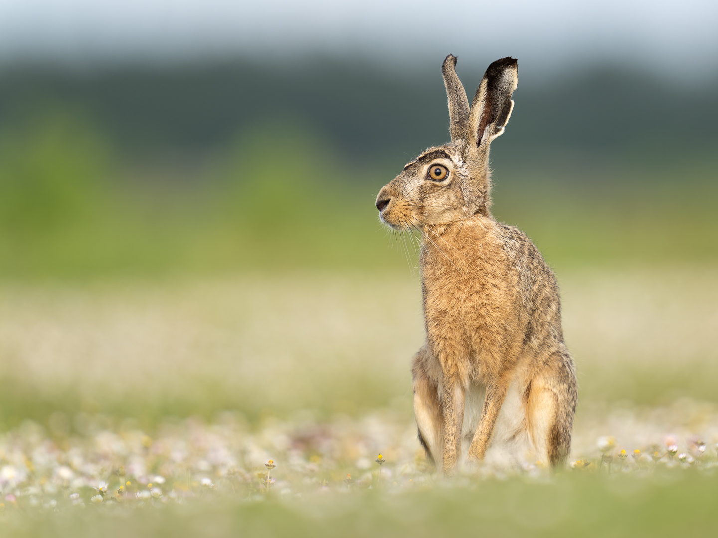 Een haas tussen de voorjaarsbloemetjes, die past vandaag toch wel mooi als Paashaas dacht ik zo.