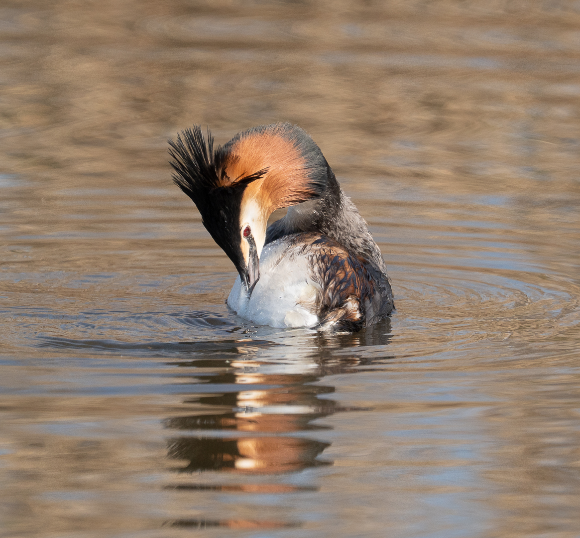 Deze fuut was druk bezig met zijn dagelijkse poetsbeurt. In deze tijd zijn de kleuren van de fuut op zijn mooist.