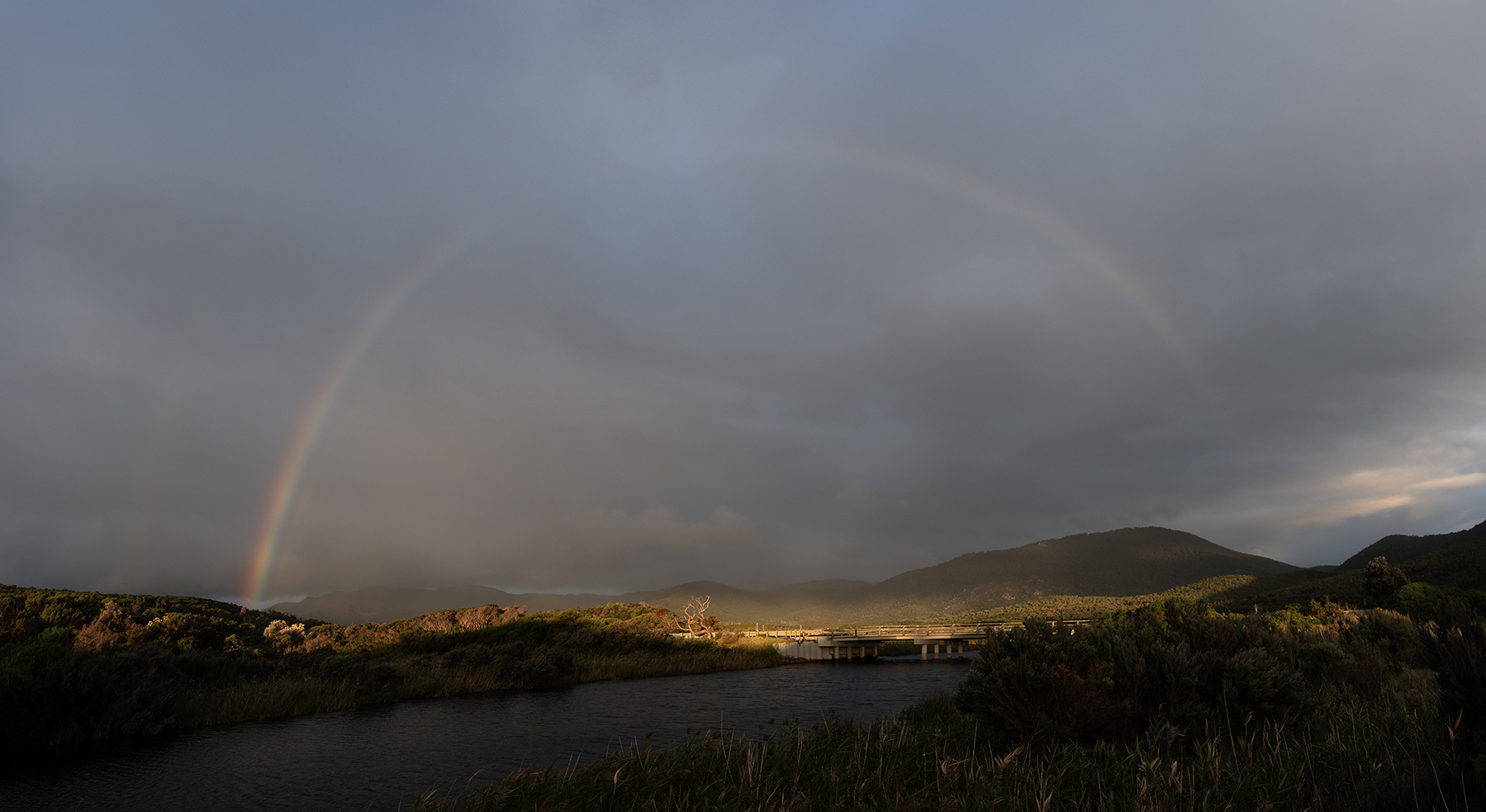 Het laatste zonnetje van de regenachtige en bewolkte dag wist er op het laatst nog een regenboogje uit te persen