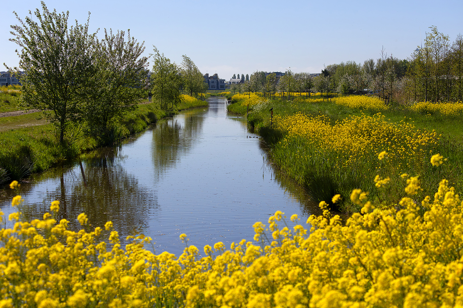 Waar je ook kijkt zie je op de velden en aan de waterkant de raapzaad bloeien wat voor een vrolijk gezicht zorgt in combinatie met het groen van de bladeren aan de bomen en de blauwe lucht die we de laatste tijd volop hebben.