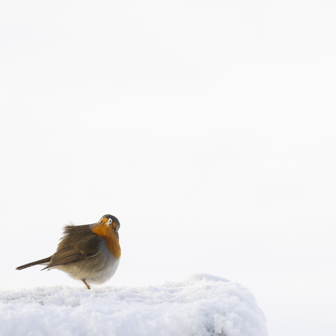 Dit roodborstje betrapt in de tuin toen met z'n snavel in de sneeuw pikte