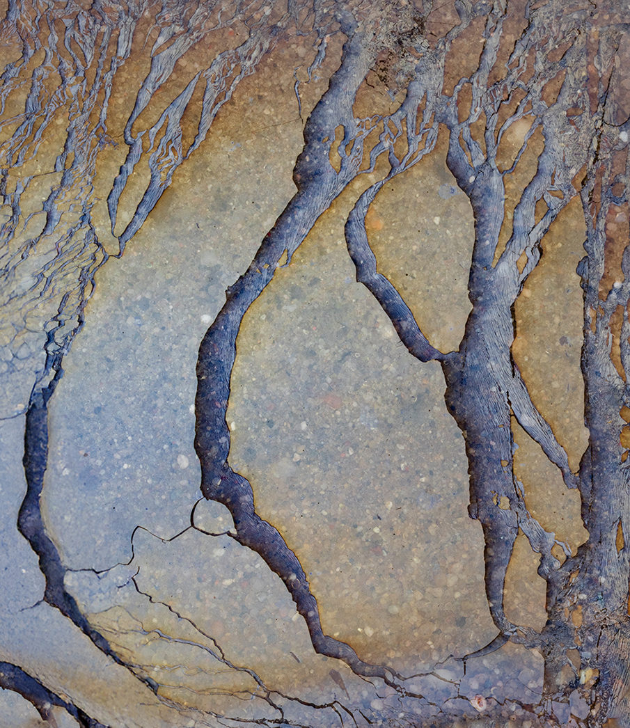 Na het smelten van de sneeuw zag ik kwel water met figuren wat mij enthousiast maakte. Thuis zag ik na een uitsnede deze bomen ontstaan.
