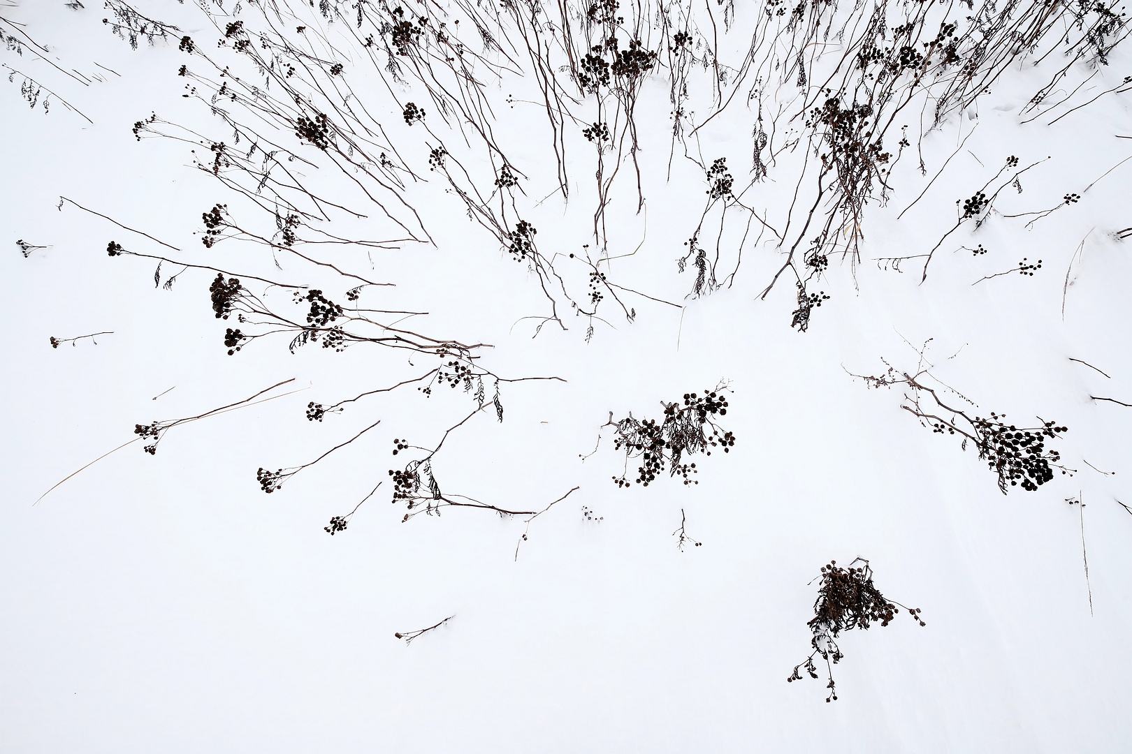 Dit is geen drone foto van de planten in de sneeuw maar met gestrekte armen ,en dan is zo uit klapbaar schermpje wel handig, deze opname kunnen maken. Foto op advies een beetje lichter gemaakt.