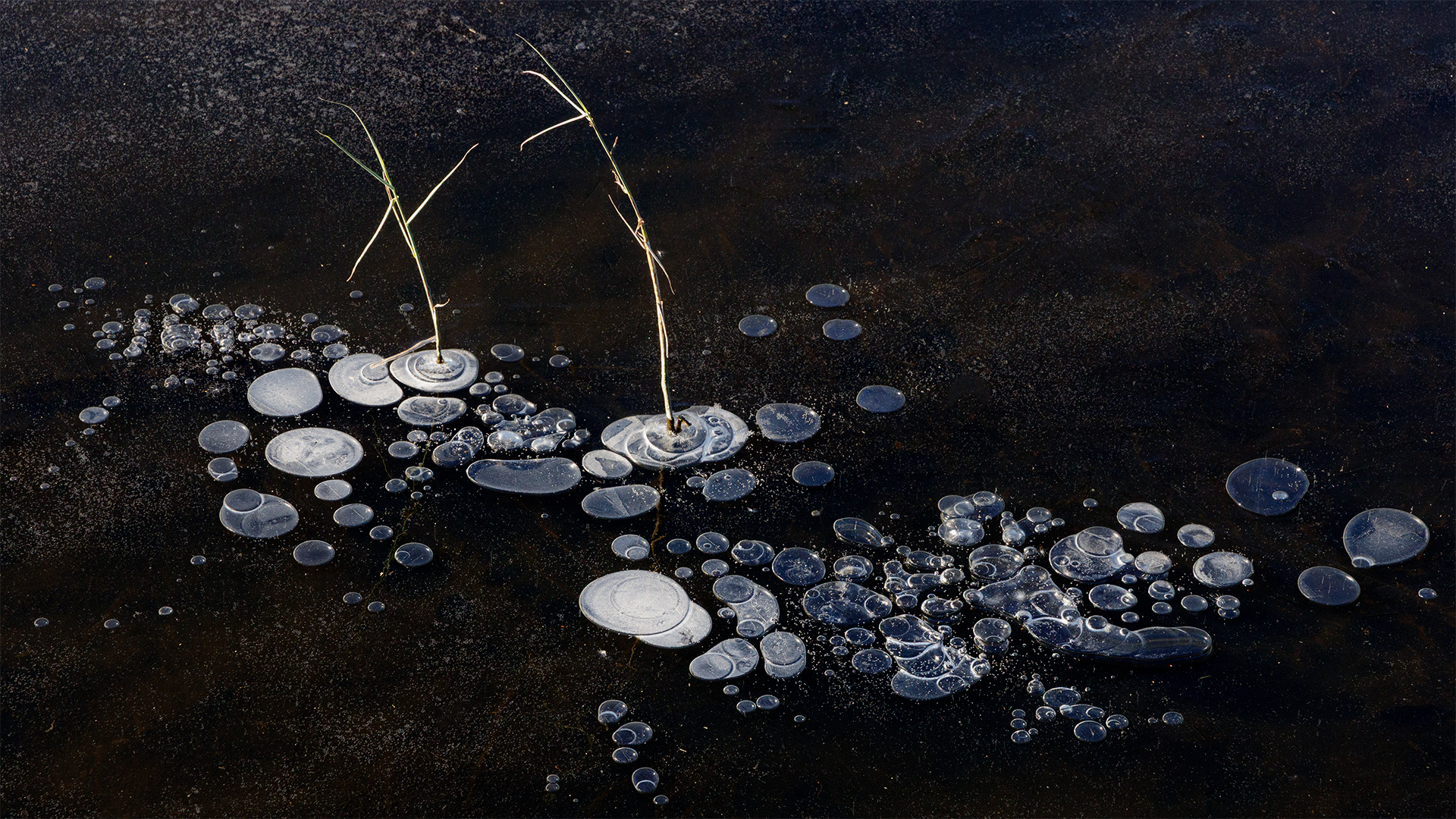 Dit beeld is deze week gemaakt voor een opdracht van de Kerstvakantie Inspiratie cursus van Natuurfotografie.nl. De bedoeling was om een beeld met zeggingskracht te maken waaruit veerkracht naar voren kwam. Deze gebogen rietstengels in het bevroren water tonen voor mij de veerkracht, zowel letterlijk al figuurlijk. Tevens zijn de ijsbellen voor mij figuratief "lichtpuntjes" voor de beeldtaal.