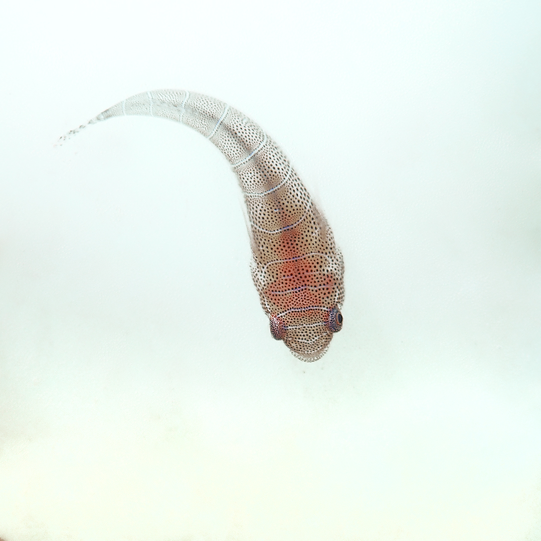 Kijkend naar de foto verbaasde ik me over de lichte omgeving, dacht dat het water was, maar het visje zit op een pijler van de pier lees ik, dat verklaart een hoop. Visje staat met een mooie houding in de compositie, vierkant formaat past er goed bij.