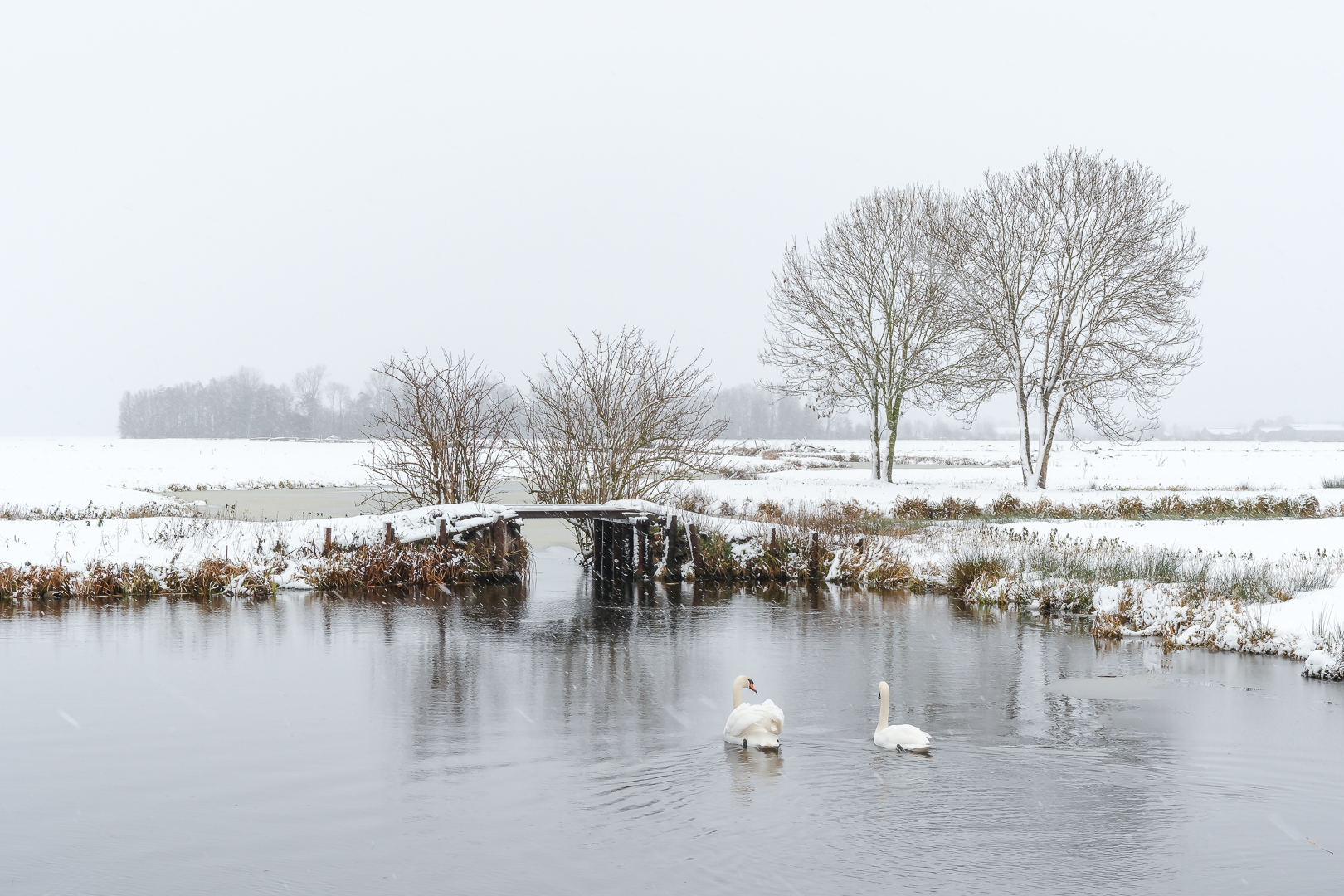 Een polderlandschap wat vroeger waarschijnlijk heel "normaal" was in de winter, maar wat steeds unieker wordt. Prachtig in beeld gebracht Frans met een weloverwogen compositie, waarin de zwanen een fijne diepte aan je foto meegeven.