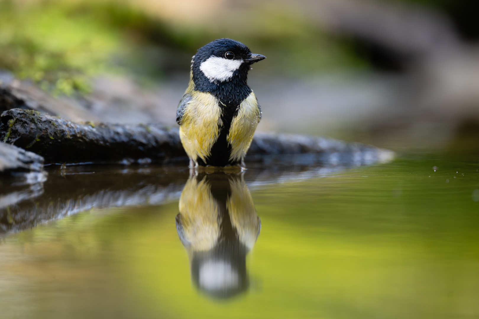 Vooral de kleuren van de reflectie spraken me aan en een Koolmees is natuurlijk weliswaar een algemeen vogeltje maar ook gewoon een mooi vogeltje.