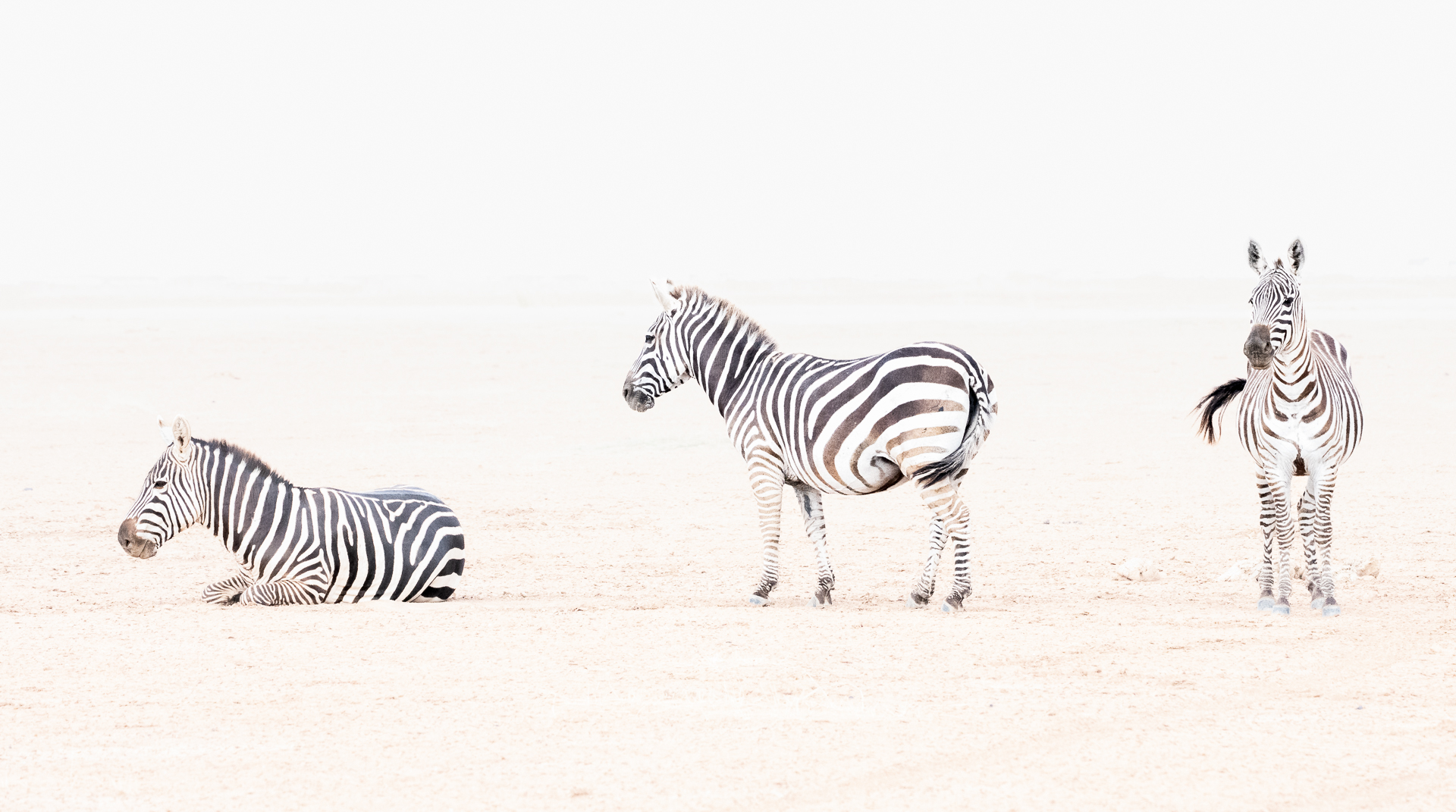Mooie HighKey opname van de 3 zebrapaardjes op de grote vlakte...heb wel eens gehoord dat het daar zo licht is, dat je haast wel genoodzaakt bent er een HK van te maken. Mooi beeld Loes, de paardjes springen er mooi uit zo, zou het beeld persoonlijk iets meer wit hebben gegeven.