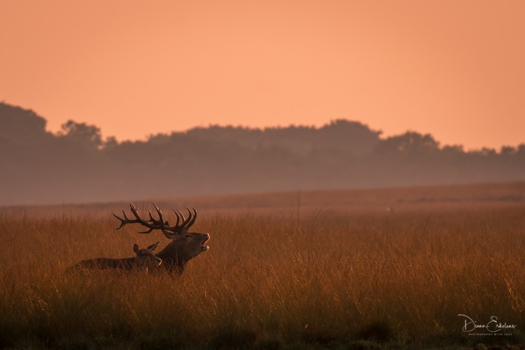 Midas Dekker zou een sappig boek over het gehele schouwspel kunnen schrijven. Als toetje nog even naar het Reemsterveld. Ook hier erg rustig, maar de ondergaande zon maakte er een sprookje van. Ik heb genoten van het weer, het magnifieke natuurverschijnsel van de bronst en “ last but not least “het gezelschap van de DDN leden. Ik ging naar huis met mijn hoofd vol leuke ontmoetingen, momenten, nieuwe fototips en een streep door een van mijn “to do’s”. Misschien toch maar eens de stoute schoenen aan trekken en iets plaatsten op DDN….