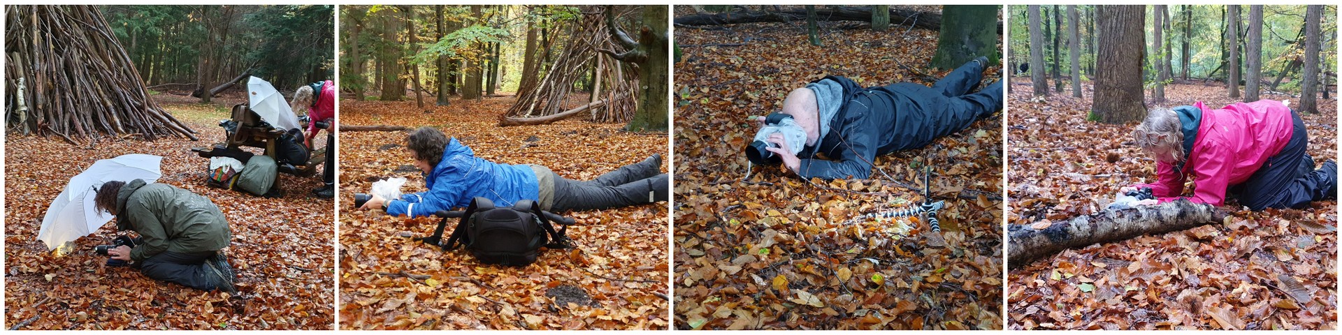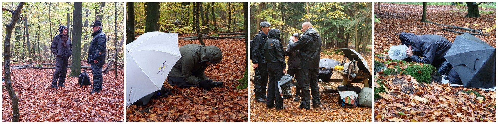 Op zaterdag 30 oktober stonden Brigitte van Krimpen en Loes Belovics op de parkeerplaats bij het mooie Spanderswoud met de telefoon in de hand, wachtend op afmeldingen voor de Paddenstoelen-Fotodag. Want, na een aantal fotodagen met steeds prachtig weer, hadden we nu toch echt pech en was deze zaterdag ronduit nat. Maar wat een verrassing, alle deelnemers kwamen gewoon opdagen, stoere bikkels dus, allemaal gewapend met paraplu's, regenpakken, beschermhoezen, plastic zakken en wat je maar nog meer kan verzinnen, om tóch lekker te kunnen fotograferen.