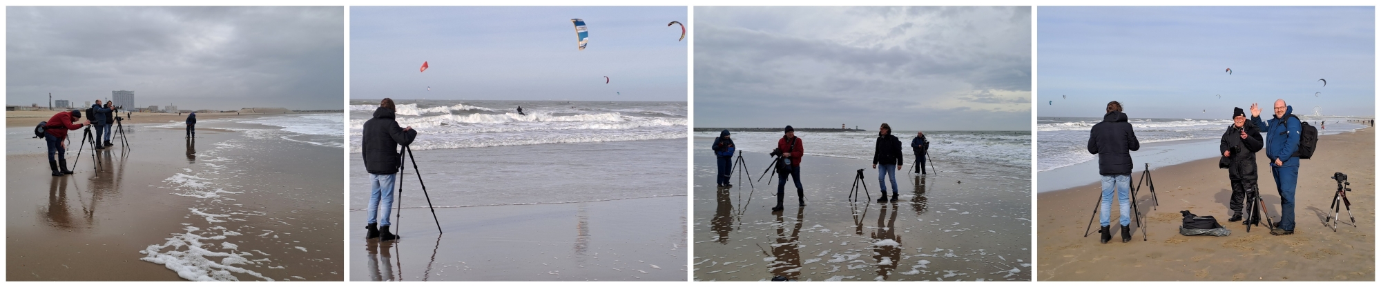 Met een klein clubje deelnemers wezen uitwaaien aan de kust bij Scheveningen tijdens de fotodag.