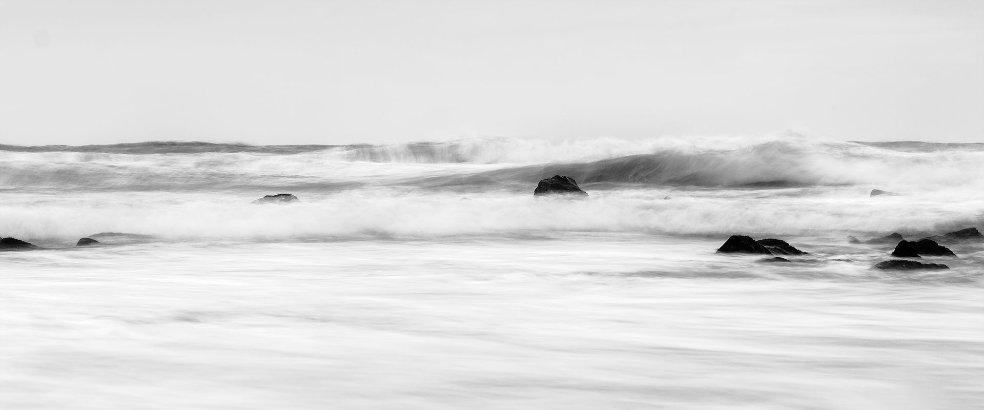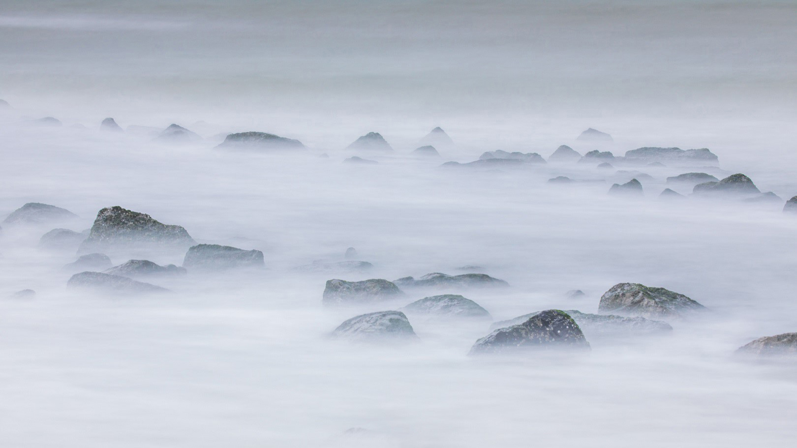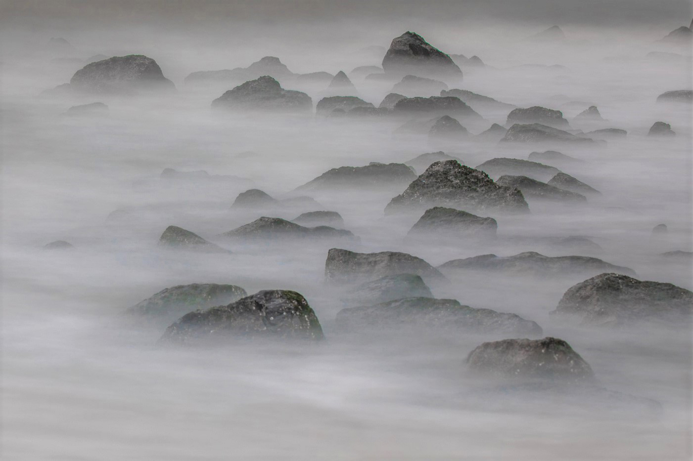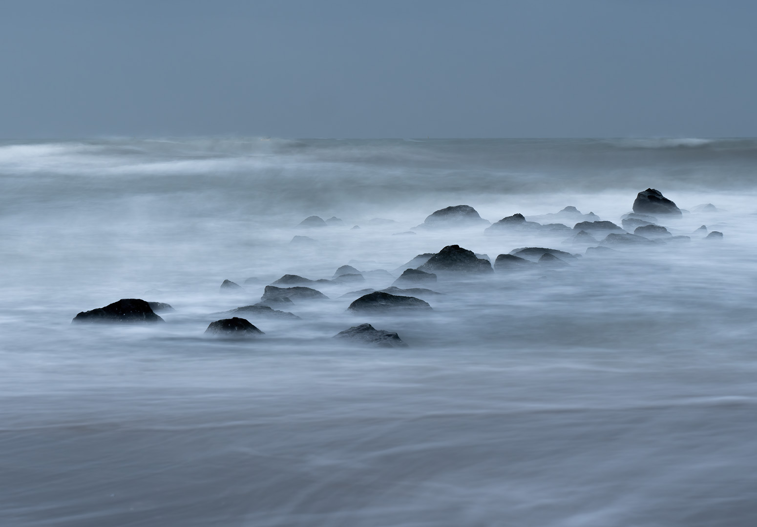Een opname met lange sluitertijd, om de kracht van het zeewater weer te geven.
