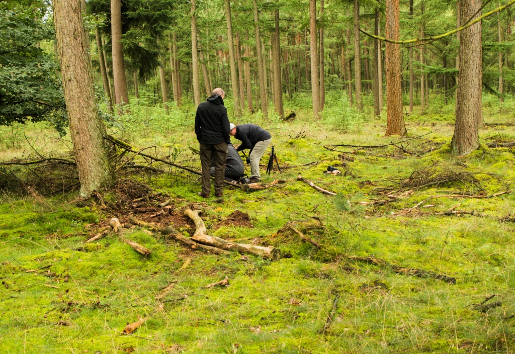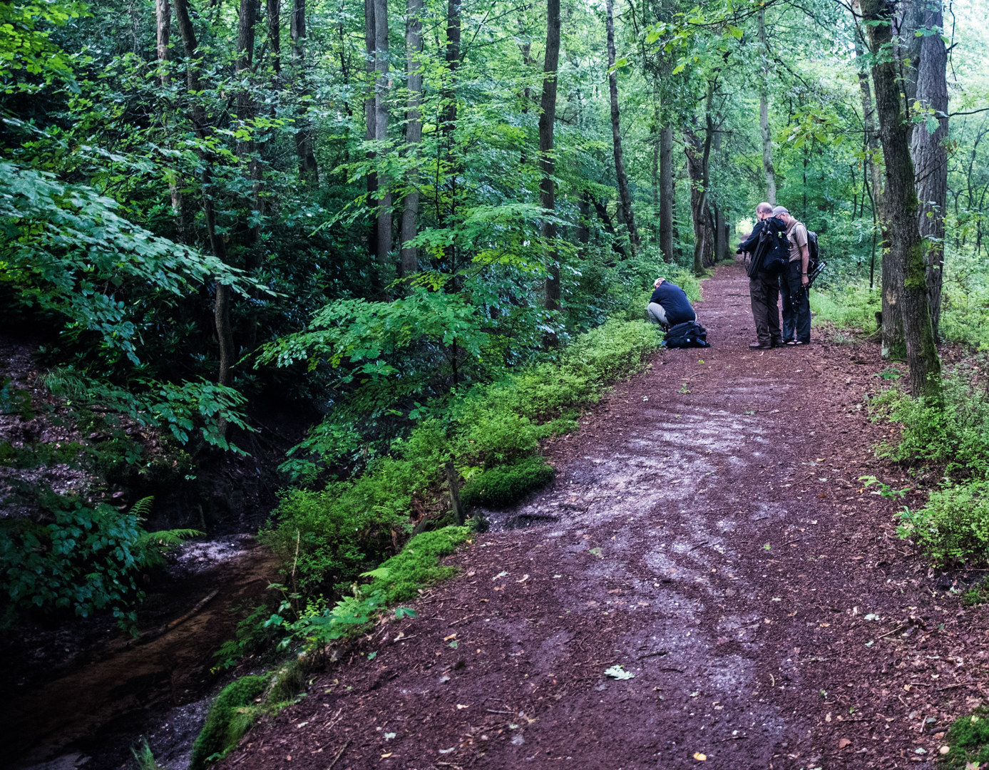 Vrijdag 18 augustus, 7:00 ‘s-morgens. Een grauwe ochtend. Twee van de zes deelnemers hadden helaas op het laatste moment af moeten zeggen, dus we waren met z’n vieren plus een: Brigitte van Krimpen , Ronald Jan Bos en zijn vrouw, Nico van Gelder en mijzelf, Menno Graaf. Eerste doel was de Soerense Beek, een spreng die diep de Veluwe inloopt en begint met een spectaculaire, drievoudige, sprengkop. Het bos was mooi vochtig van de regen, wat de kleuren ten goede kwam. Ieder had overduidelijk zijn eigen specialiteit en achtergrond, Brigitte deed veel macrowerk, Ronald Jan zat meer op de vogels, Nico de allrounder en ik helemaal in mijn element. De eerste korte fotostop was bij het bruggetje over de spreng