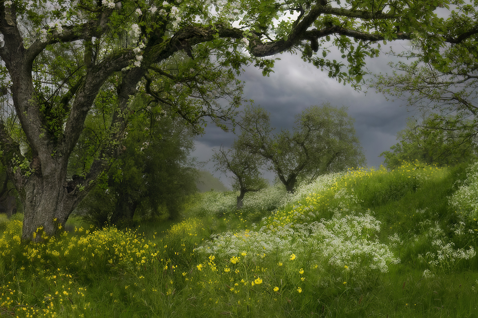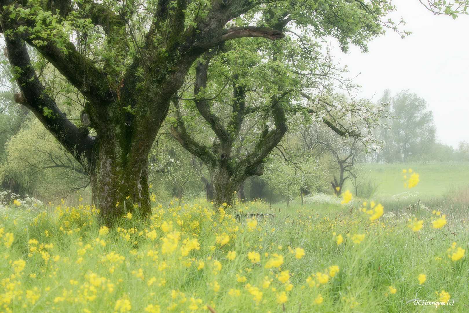 Het was een explosie van lentebloeiers in Werk aan de Groeneweg tussen de oude fruitbomen tijdens de fotodag van Deel de Natuur. Helaas geen mist met mooie zonsopkomst, alleen maar grijs. Daarom heb ik wel wat contrasten in de lucht aangebracht. Ondanks het grijze weer was het een hele mooie ochtend en het was leuk om andere mensen van Deel de Natuur te ontmoeten. Dank voor de fijne dag!