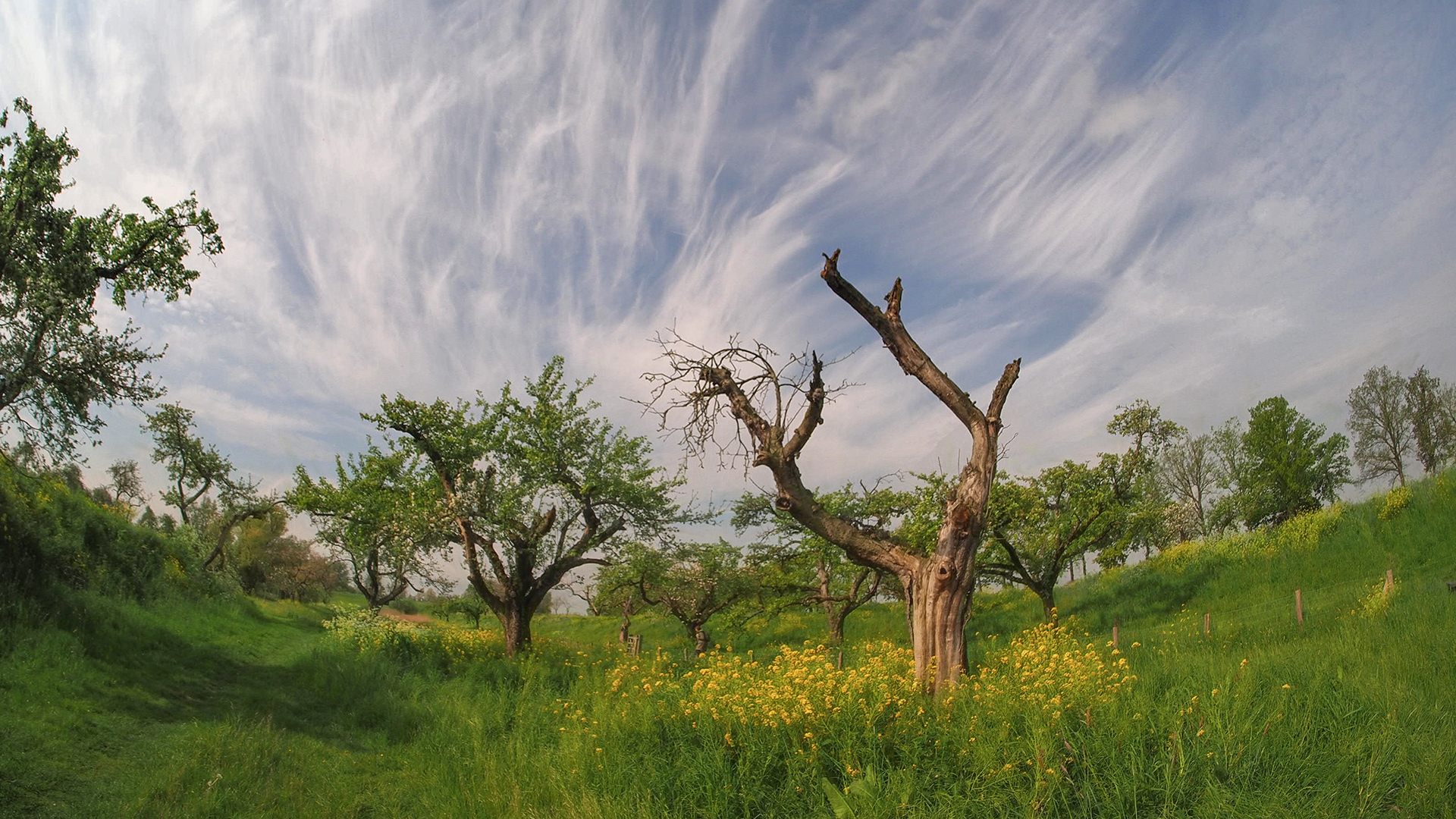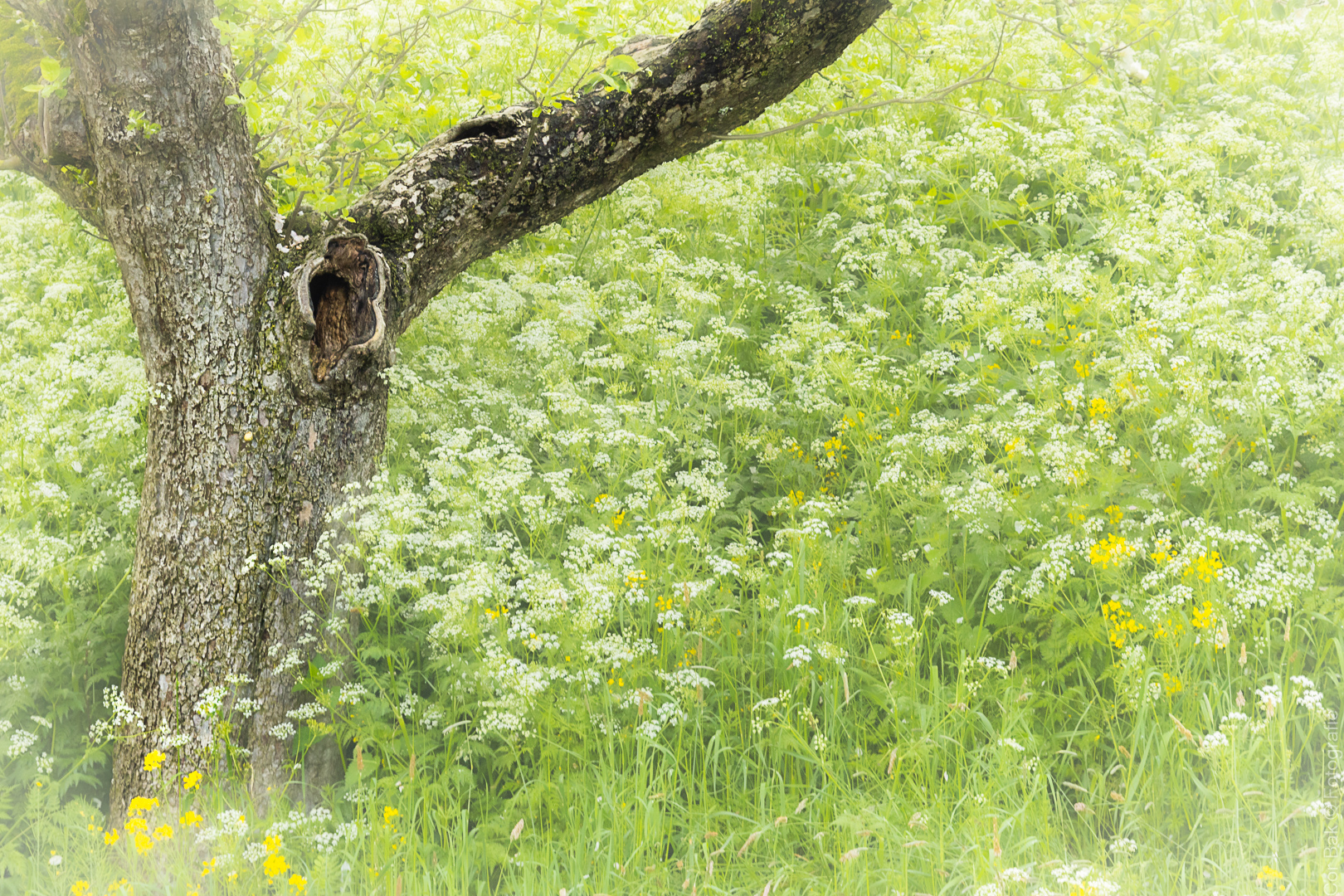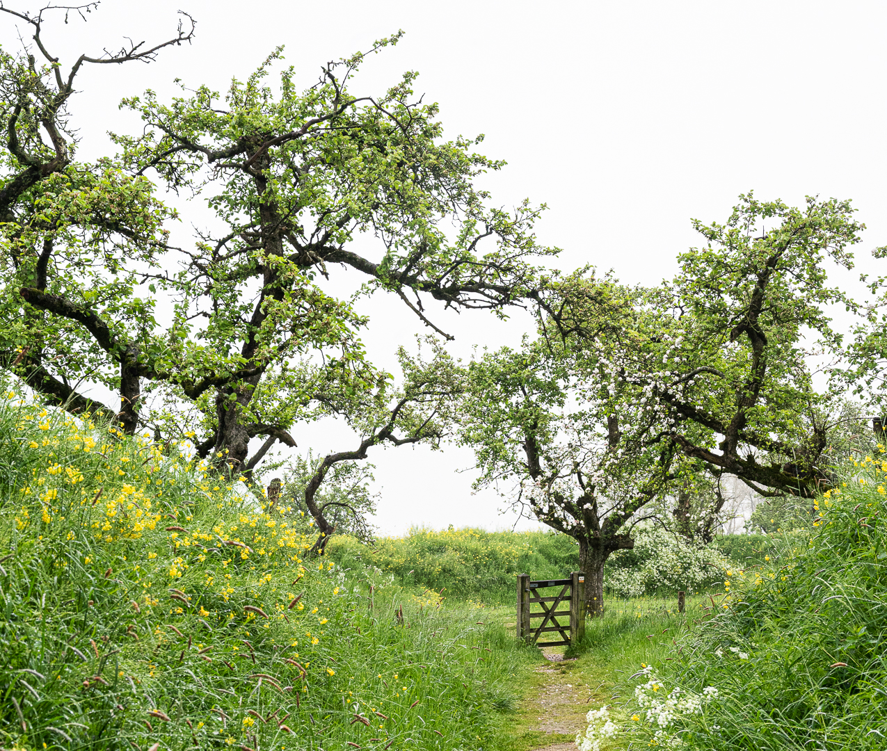 Helaas zat het weer aanvankelijk niet mee. Het had ‘s nachts nog behoorlijk hard geregend. De dag begon dan ook grijs. Gelukkig brak rond 10 uur de lucht wat open en werden de kleuren van het gras, fruitbomen, koolzaad en fluitenkruid wat fleuriger en aansprekender. Door de wind was macro fotograferen helaas vrijwel niet mogelijk. Ook de vlinders zaten door de regen lekker verstopt. Maar iedereen vond het landschap en het gebied heerlijk rustig om te genieten en te fotograferen.