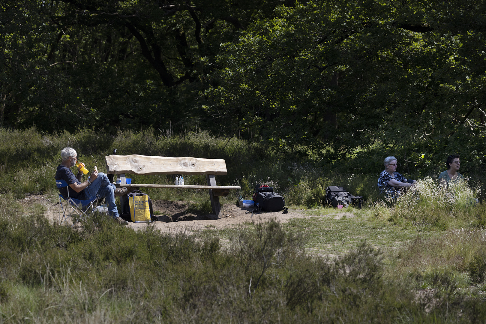 Onder het genot van een kop koffie vertelde Ronald over Zandhagedissen in het algemeen en hoe je deze het best kan fotograferen. Daarna begon de zoektocht naar de beestjes, die redelijk snel werden gevonden. De temperatuur steeg inmiddels tot 28 graden, oefff wat kan het warm worden op de hei, het zand en zonder wind. Zelfs de Zandhagedissen leken het te warm te krijgen en verstopten zich steeds meer onder de heidestruikjes, een plek waar het ondoenlijk was om ze te fotograferen. Gelukkig hadden de meesten van ons echter al een fraai diertje op de gevoelige plaat kunnen vastleggen.