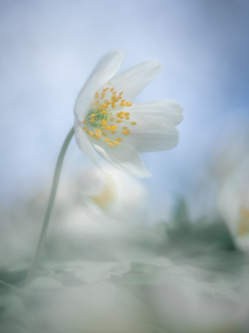 Tijdens de zeer geslaagde fotodag in Oud Poelgeest genoten van een tapijt van bosanemoontjes. En tussen dat tapijt van lentebloeiers op zoek naar een interessant beeld. Dit beeld gemaakt tussen de windvlagen door, waarbij ik de Raynox 250 gecombineerd heb met de macrolens.