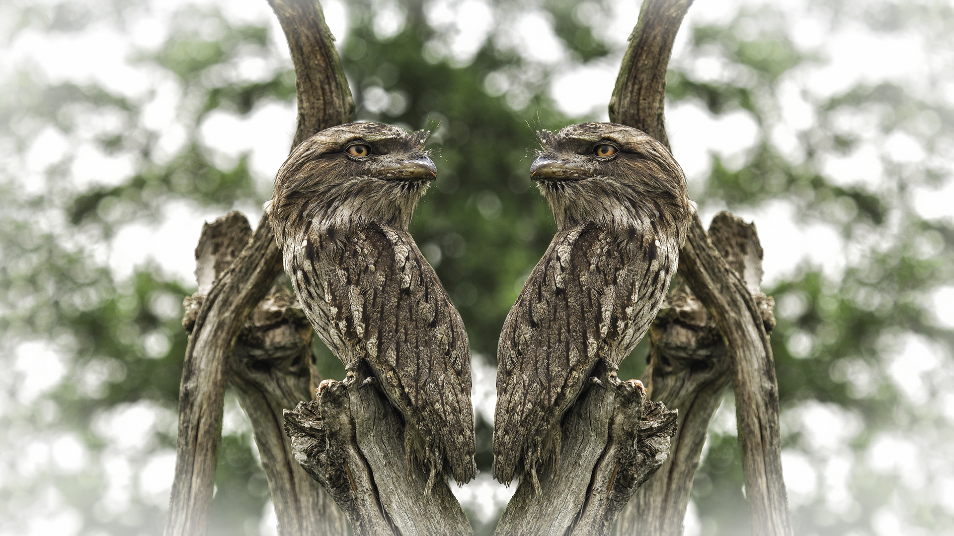 Uilnachtzwaluw - Madeleine Assink-KleveMadeleine: De foto van die vogel op de boomstronk daar ben ik de naam van vergeten maar hij zag er zo streng en treurig uit in zijn eentje dat ik hem verenigd heb met zijn tweelingbroer waardoor hij ineens een stuk blijer kijkt! De hartvorm die de 2 vogels zo vormen staan voor het warme hart dat ik Olympus en jullie toedraag na deze perfect verzorgde dag.