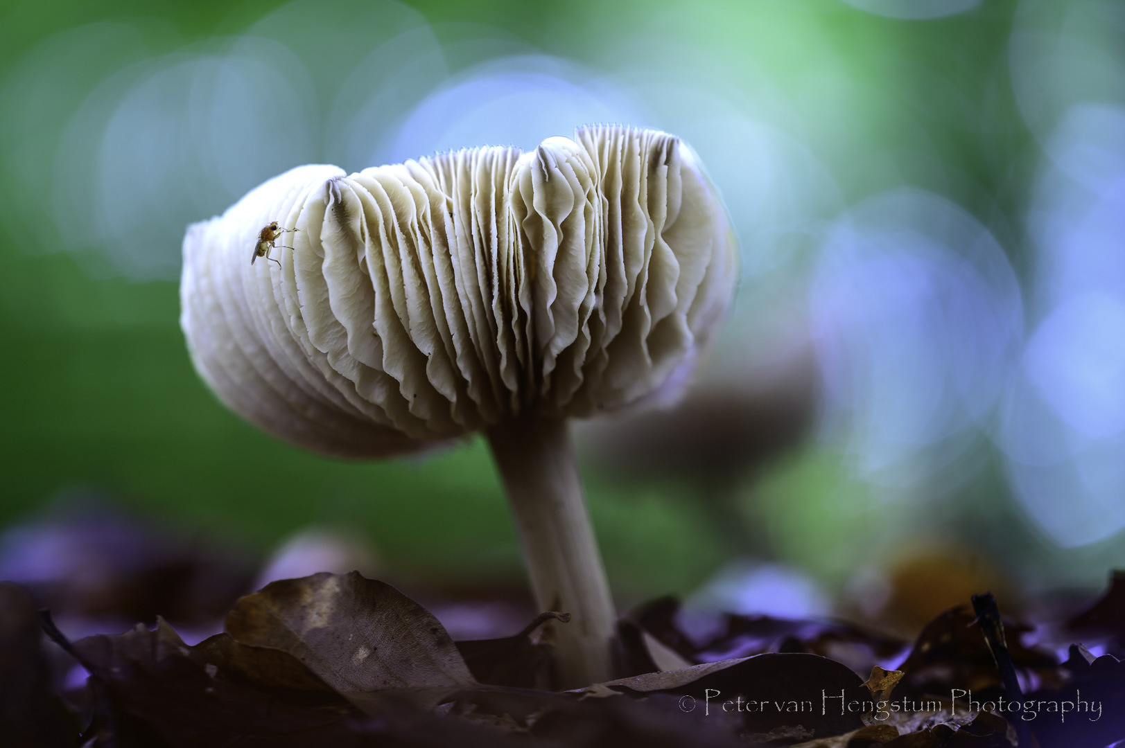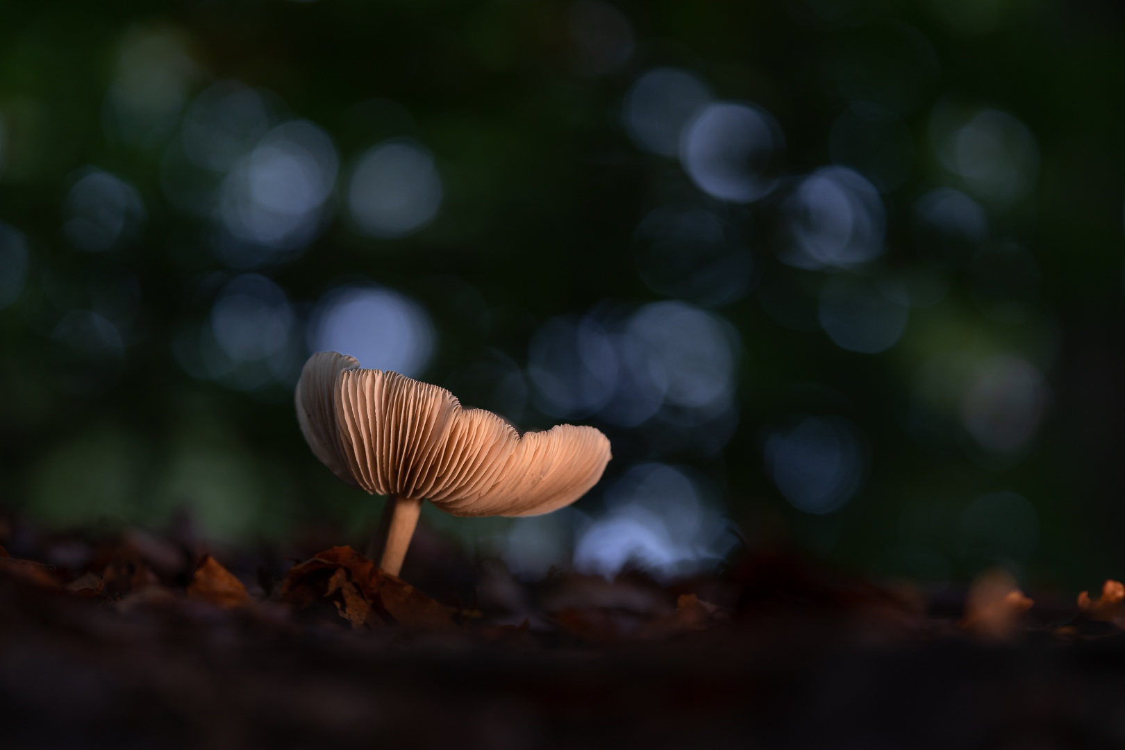 Tijdens de workshop een dag eerder hielp ik deelnemers op weg om deze zwam sfeervol te fotograferen met een flinke onderbelichting en witbalans op koel, terwijl je bijlicht met wat warm licht. Nu, tijdens deze fotodag, besloot ik om dat zelf ook nog maar eens even in de praktijk te brengen.