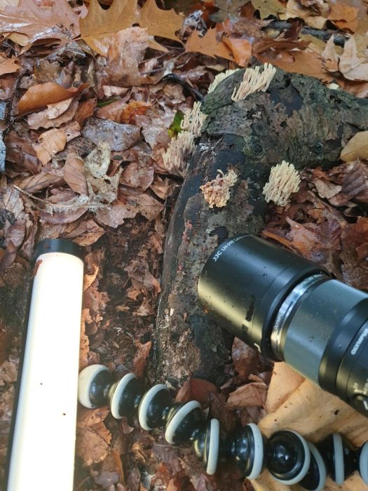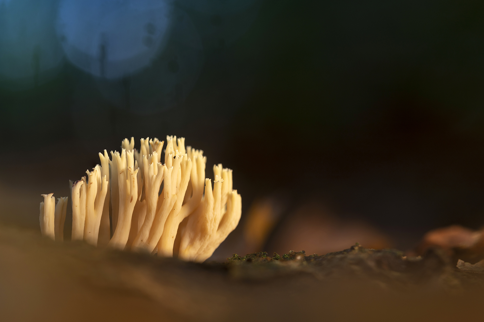 Tijdens de Fotodag in Dorst was er ook veel animo voor de Koraalzwammetjes. Hier heb ik gebruik gemaakt van het warme licht van een lichtpaneeltje.