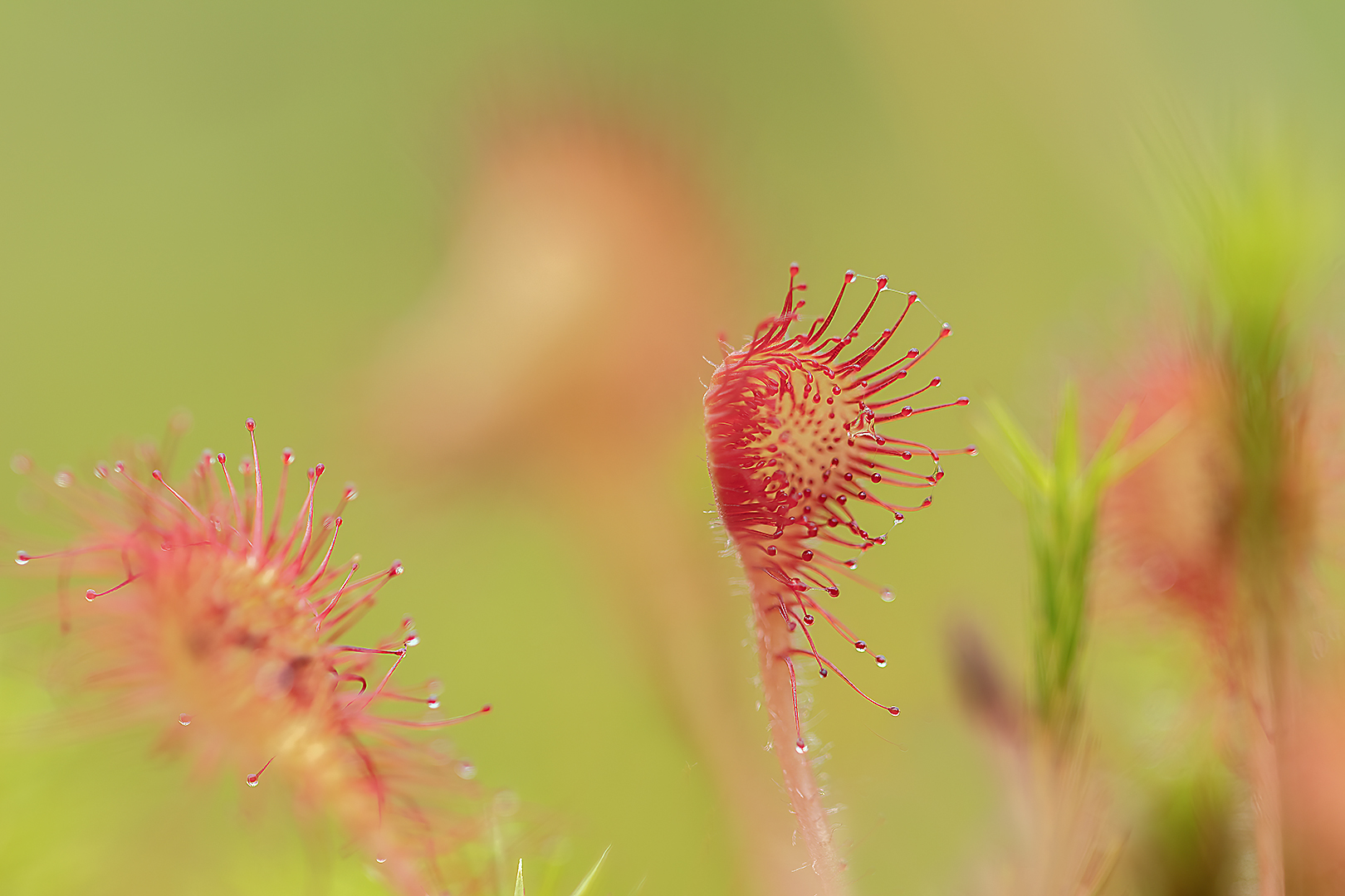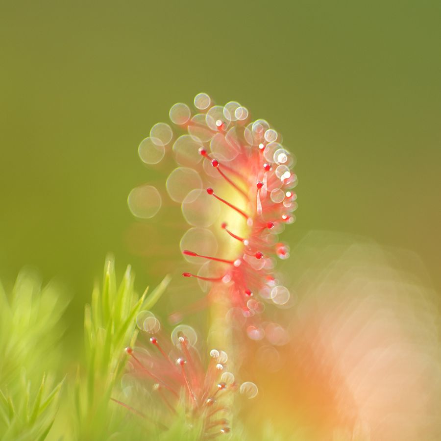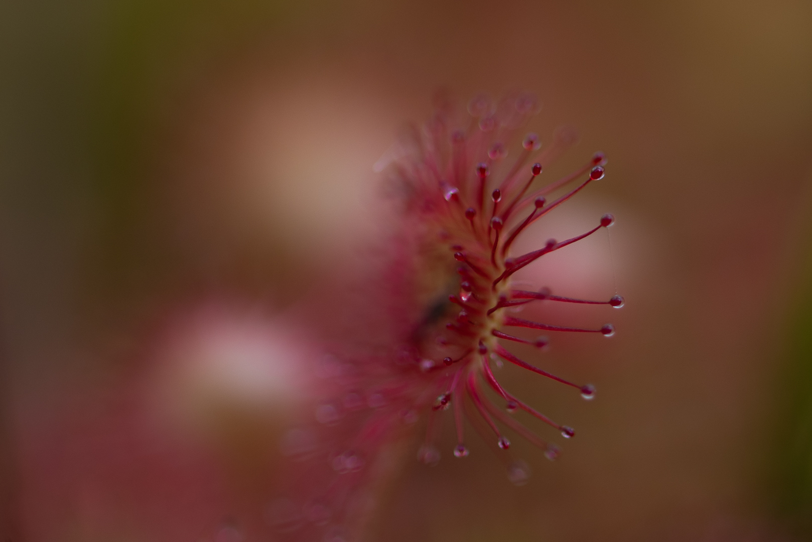 Zo op het eerste gezicht is de zonnedauw de onschuld zelve, maar wee het insect dat zich in de val laat lokken. Eerst legt hij het loodje in een plakkerig goedje en wordt vervolgens ook nog eens gewurgd. Gisteren een gezellig fotodag special in de Molenpolder gehad onder begeleiding van Loes en Richard waar we o.a. deze fraaie verleiders konden fotograferen.