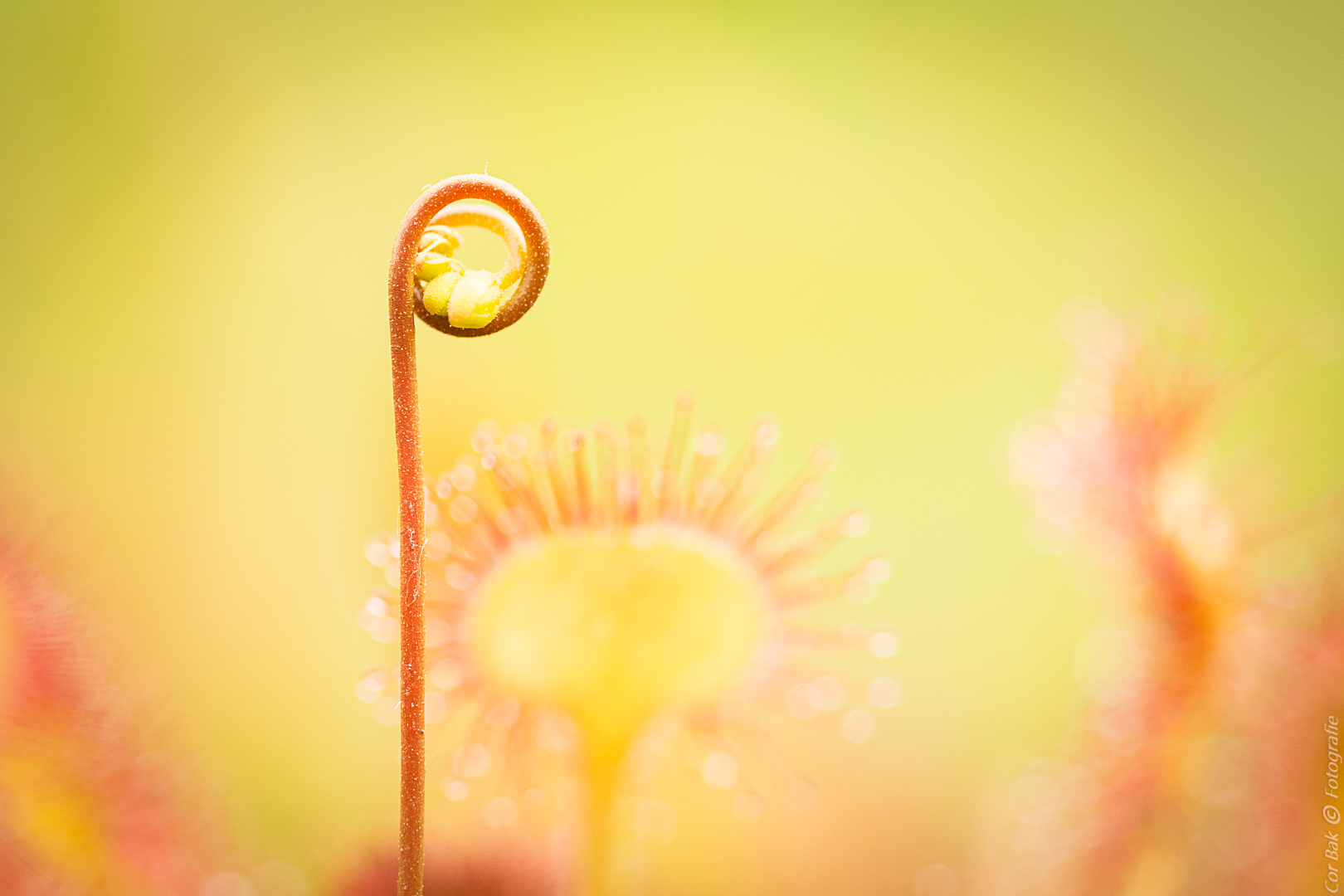 Ook deze macro foto is van de zonnedauw gemaakt op de fotodag. Nu van de bloemetjes die bijna opengaan. Na de zonnedauw locatie zijn we ook nog naar een andere locatie gereden voor o.a. orchideeën. De ontvangst deze dag was natuurlijk weer vanouds met koffie en koek. Bedankt weer Loes.