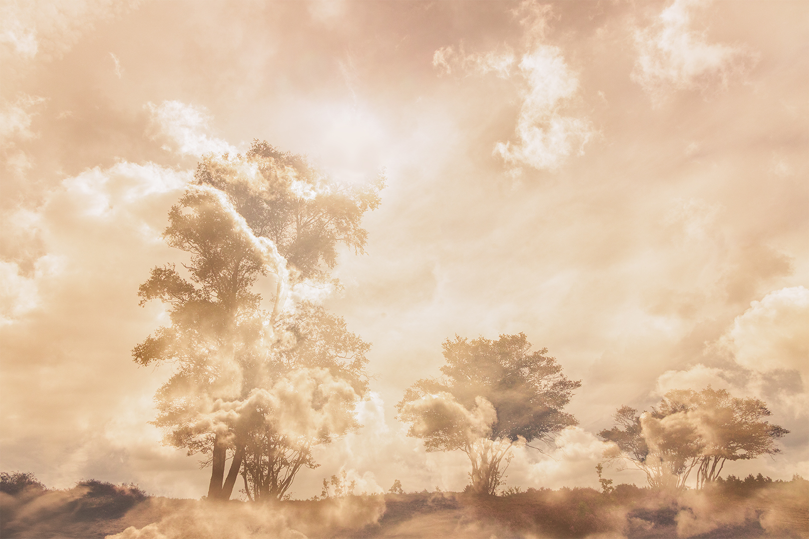Even heel wat anders dan de kleurrijke dahlia's. Gister zijn we met een klein gezelschap op de Zuiderheide geweest voor onze traditionele fotodag van DDN. Het was weer heel gezellig en dit keer eens geen strak blauwe lucht met zon, maar heerlijke wolken partijen. Een feest voor landschapsfotografie. Behalve heel veel zandstructuren (met een groothoek) ben ook ook helemaal "los" gegaan met meervoudige belichting. Toen ik deze op mijn schermpje zag was ik al blij en in het groot helemaal. Twee beelden direct samengevoegd direct in de camera, zonder verder enige manipulatie.